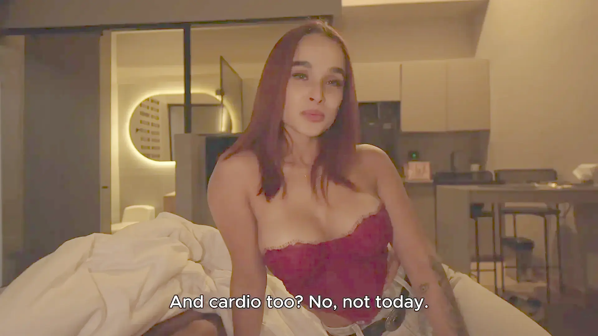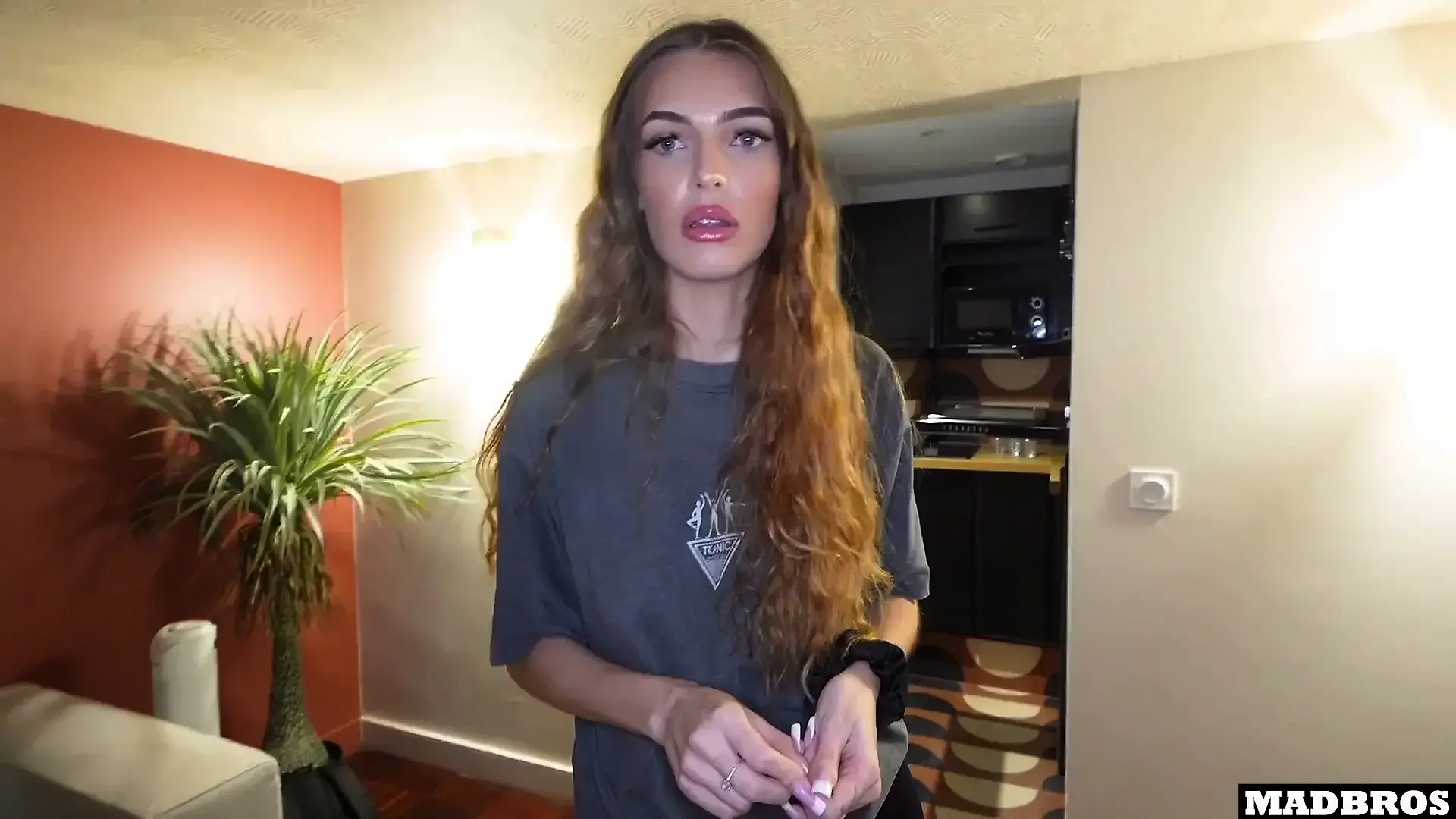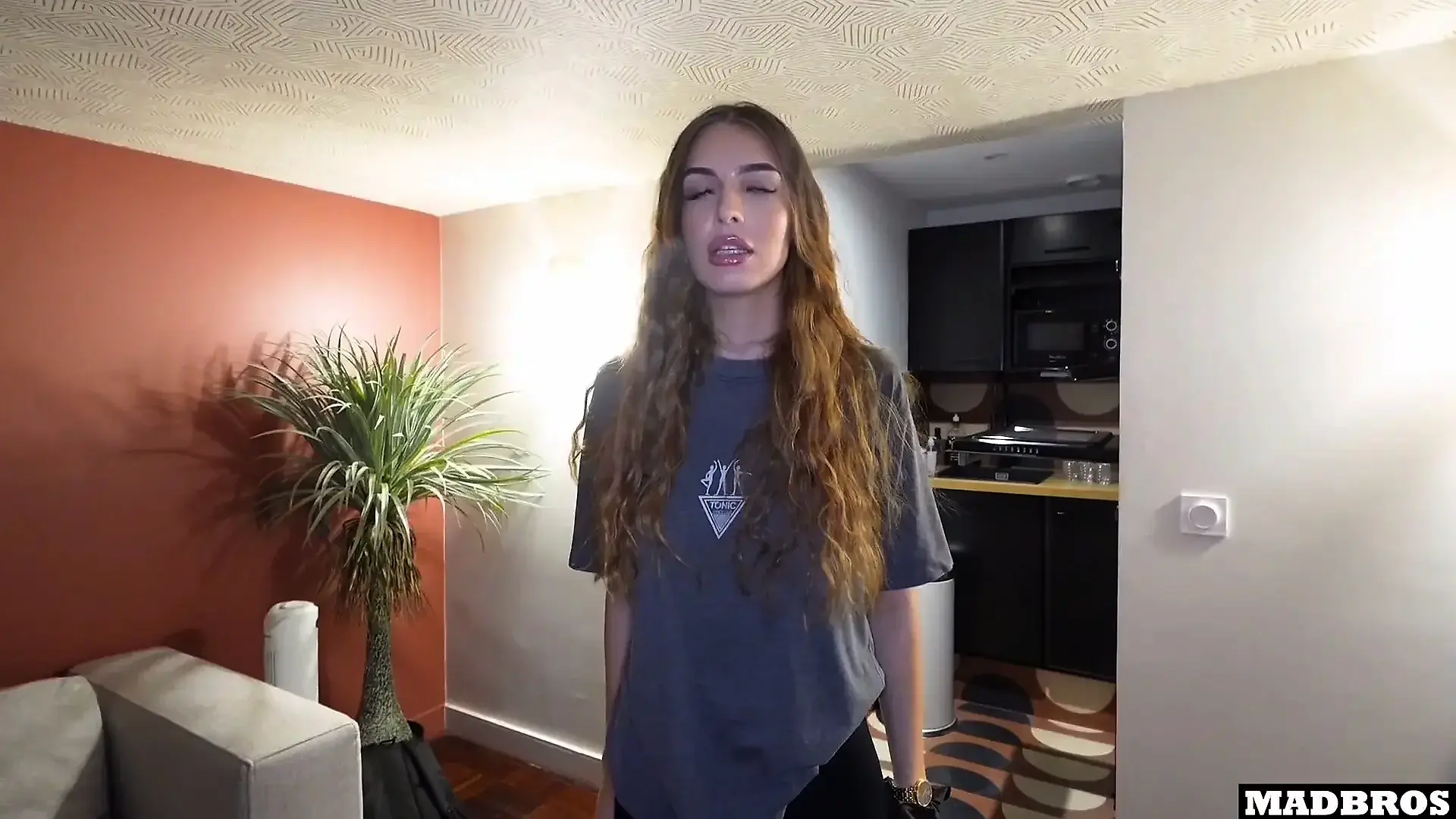 Natural Bust Spills from Tiny Bra in Couple Scene