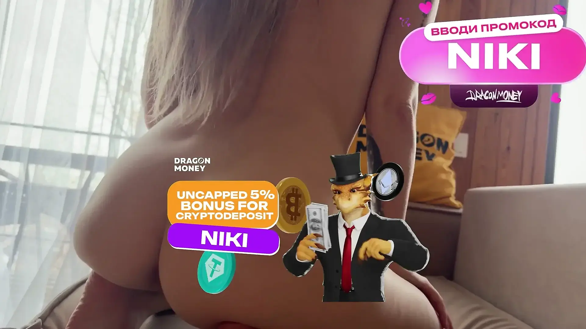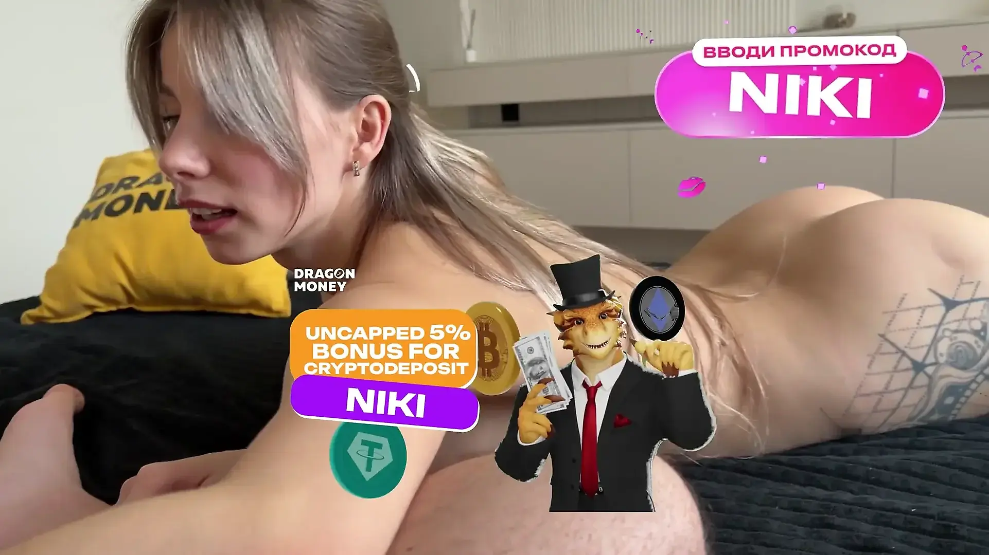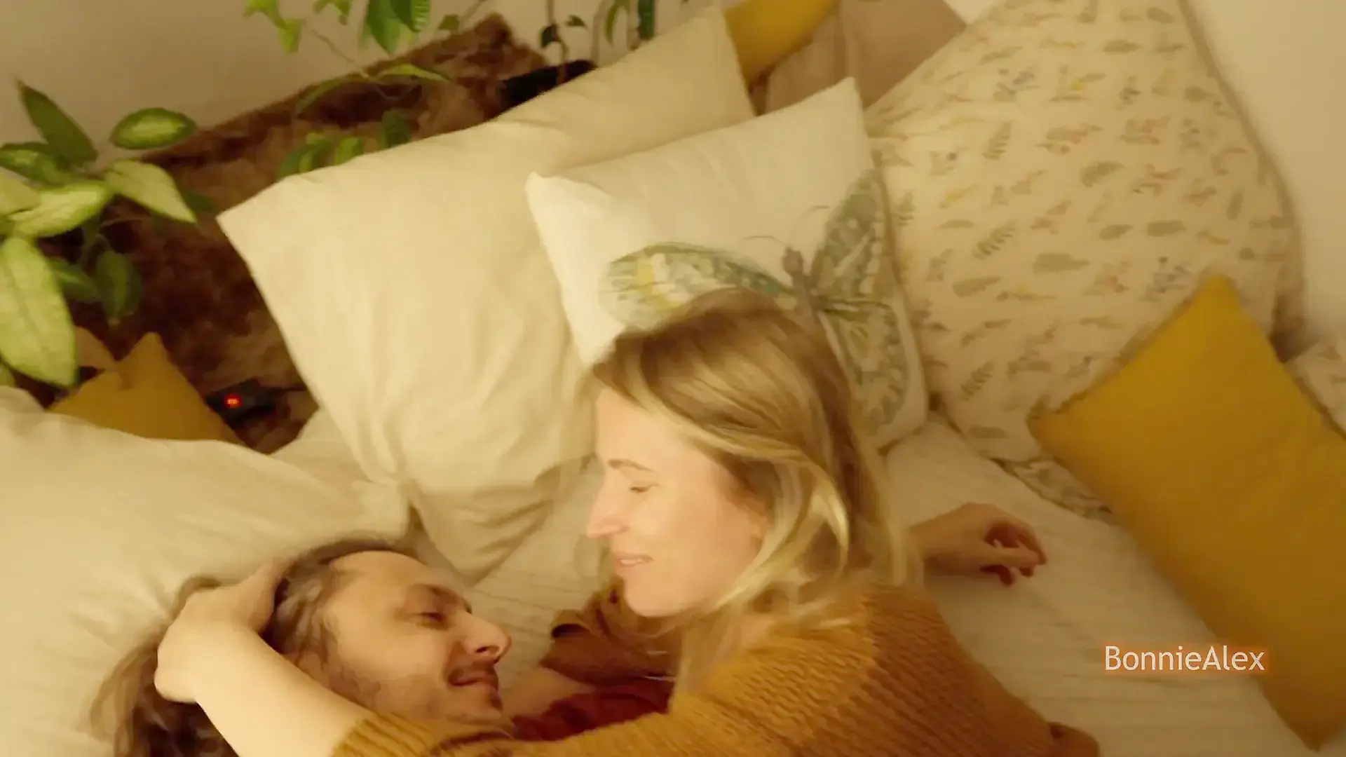 Natural Bust Spills from Tiny Bra in Couple Scene