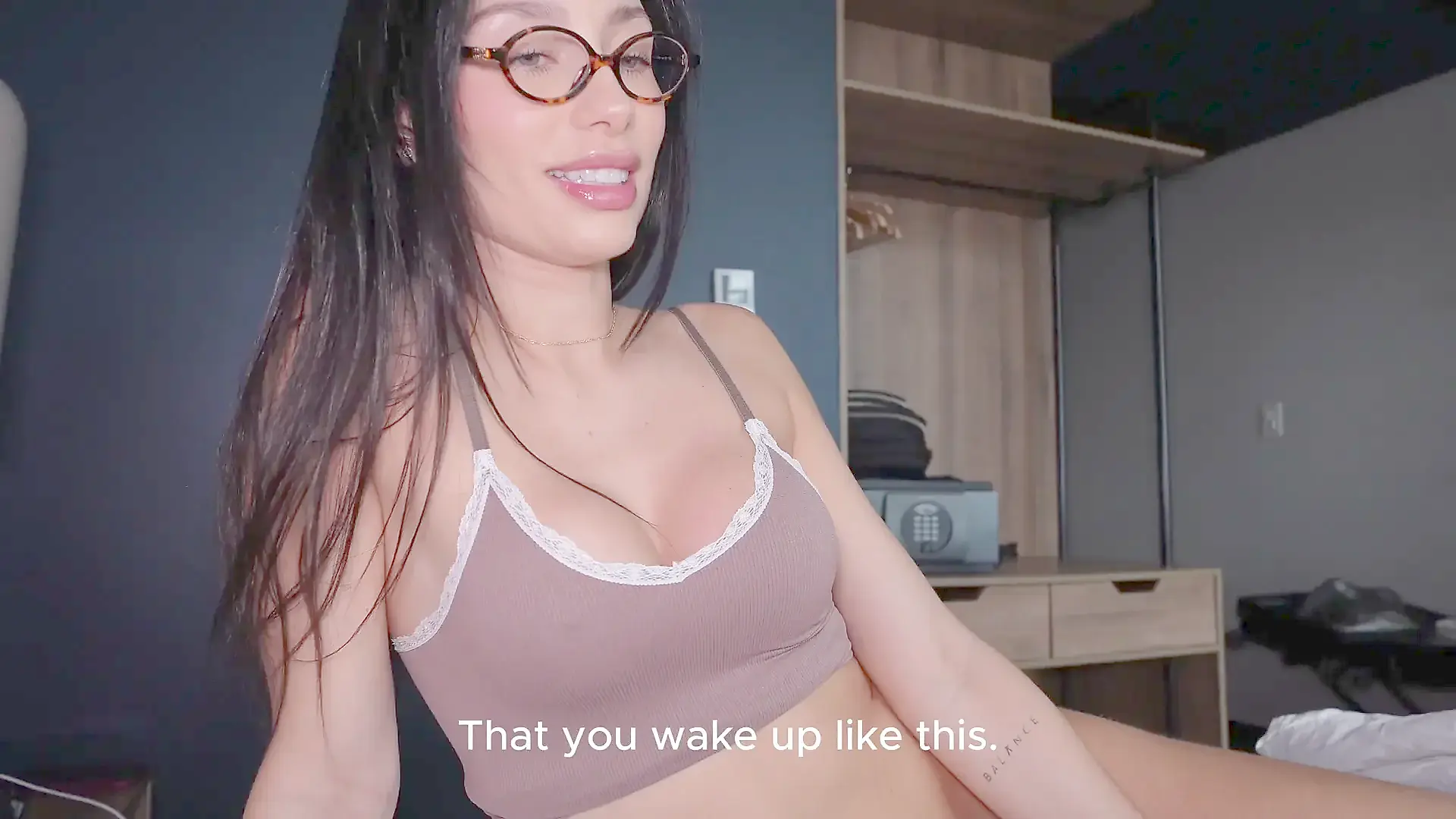 Brunette in Dress Hints at Sex in POV