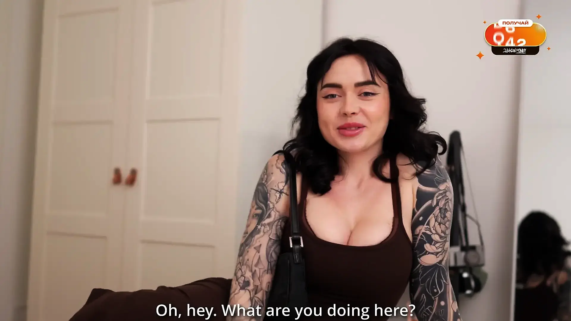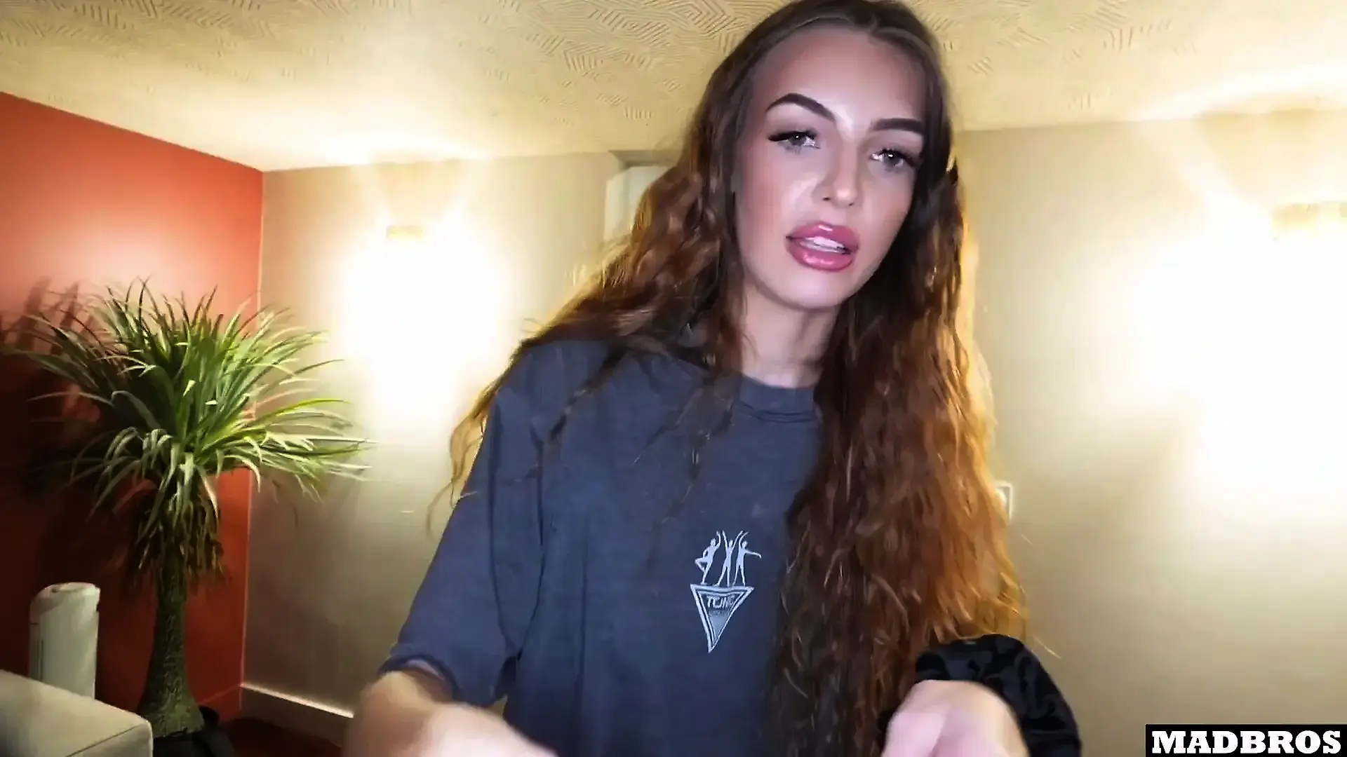 Natural Bust Spills from Tiny Bra in Couple Scene