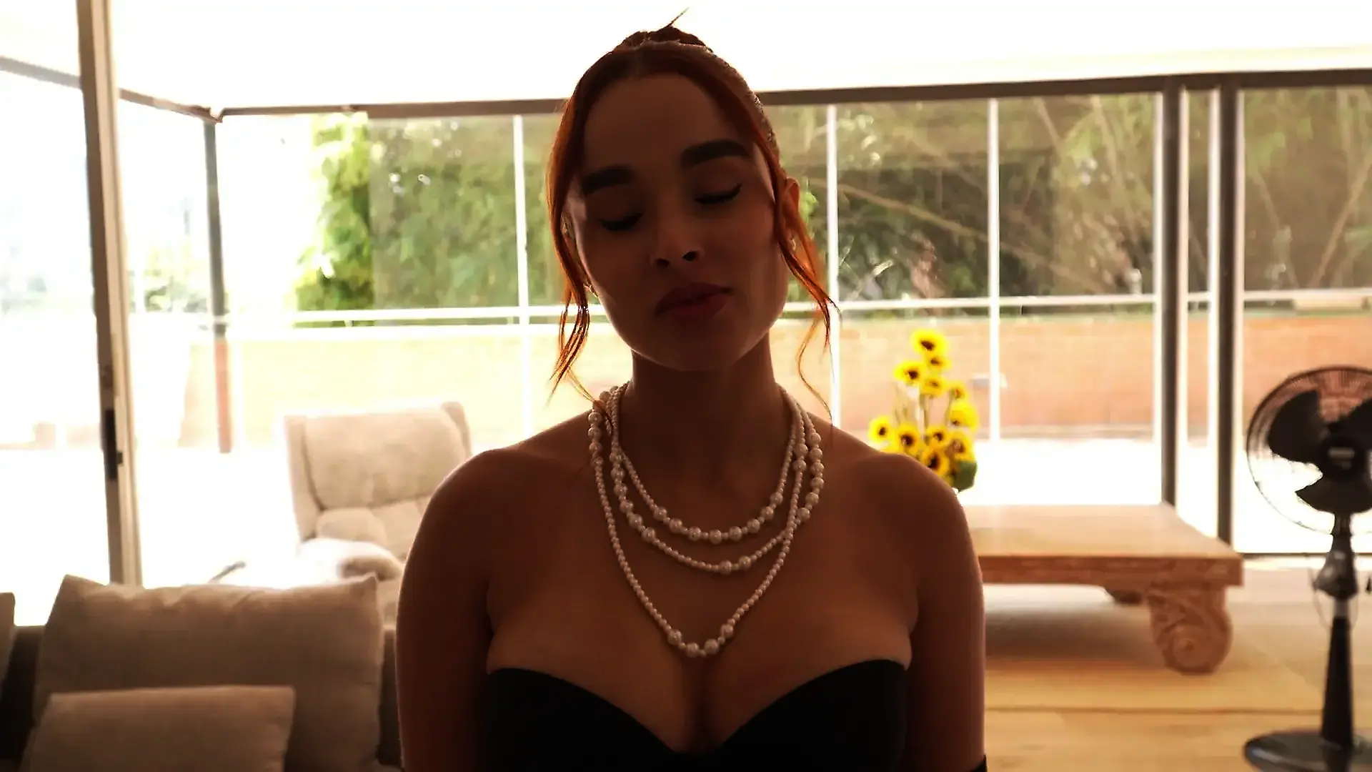 Brunette in Dress Hints at Sex in POV