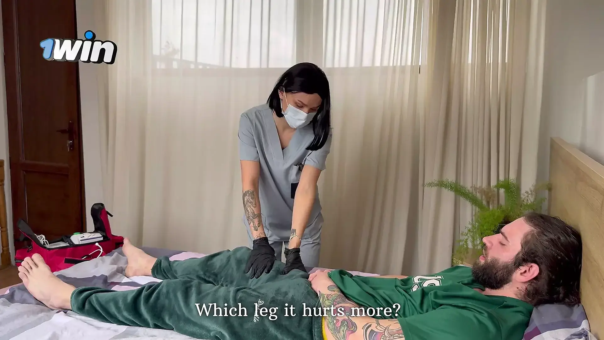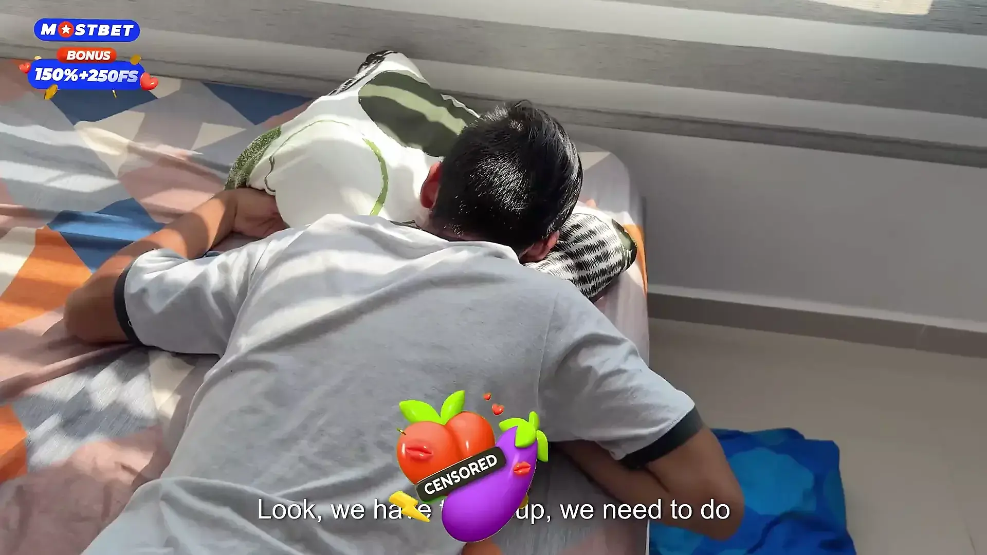 Stepmom is Lying in Bed Wearing a Night Mask.