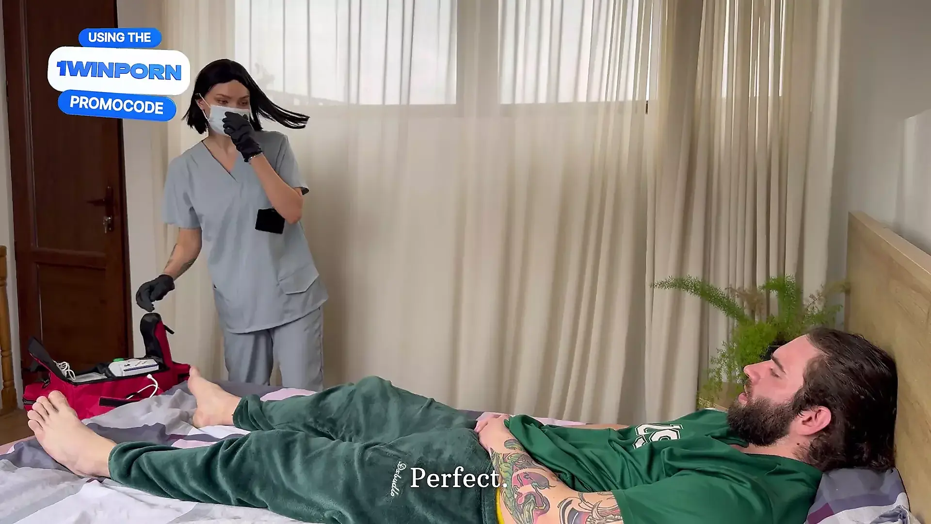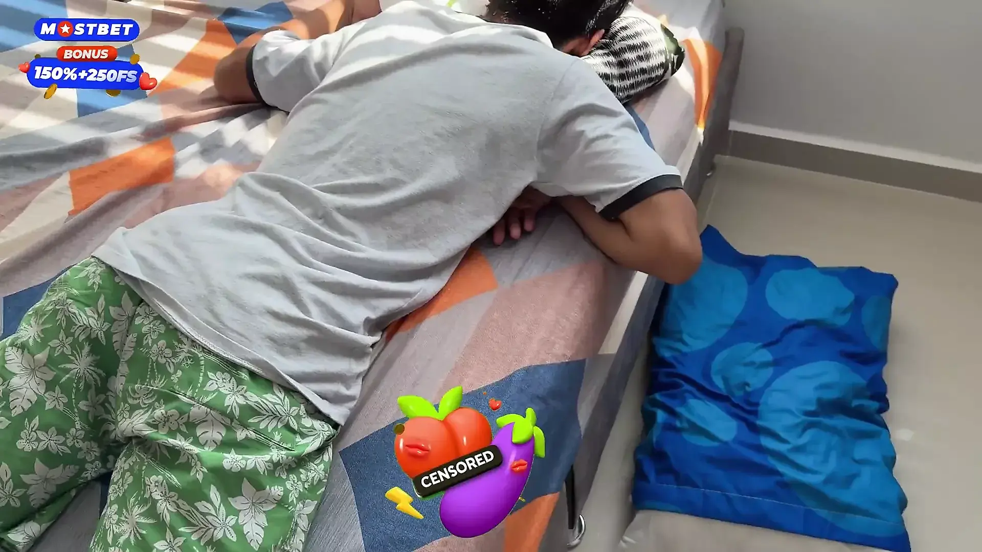 Stepmom is Lying in Bed Wearing a Night Mask.