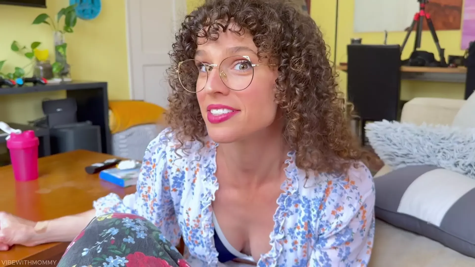 Stepmom is Lying in Bed Wearing a Night Mask.