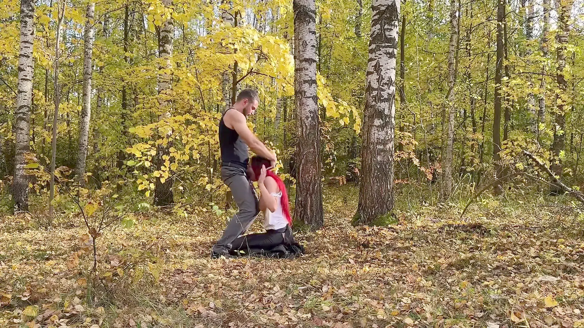 Two Guys and a Girl Fuck in the Forest in Different Positions, Hot Bi Threeso...