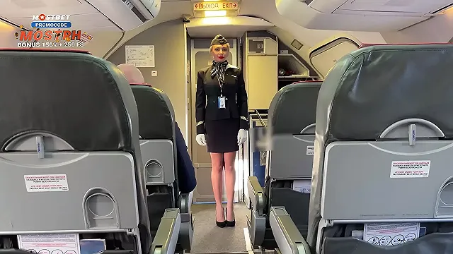 Married Flight Attendant Fucks with Pilots During a Flight in all Holes