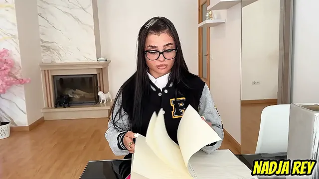 Sexy Girl in Braces and Glasses Fucks Hard in the Ass and Chokes on a Big Dic...