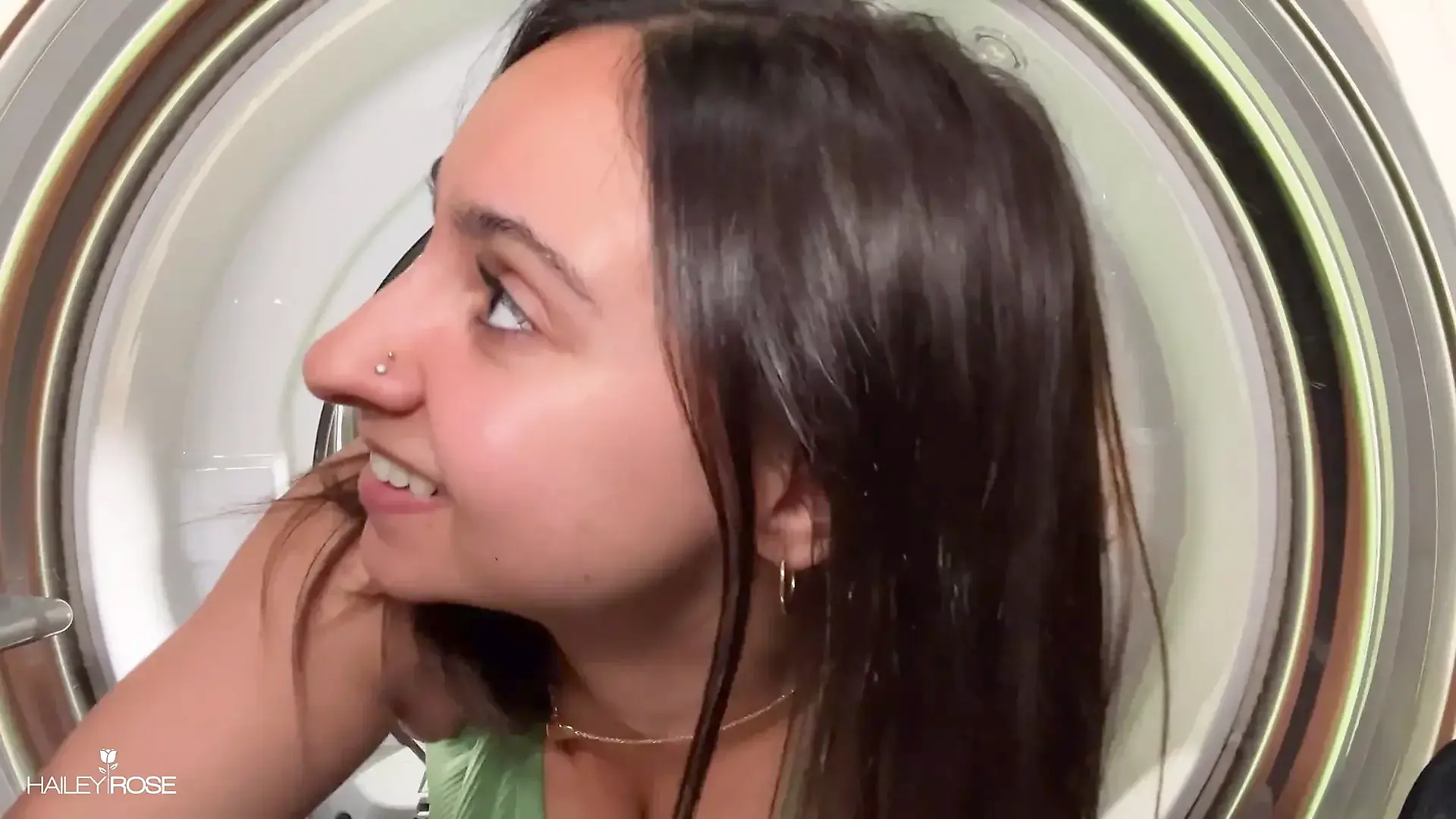 Bombshell Desi Girl Vacuuming the Bathroom in Crop Top and Jeans