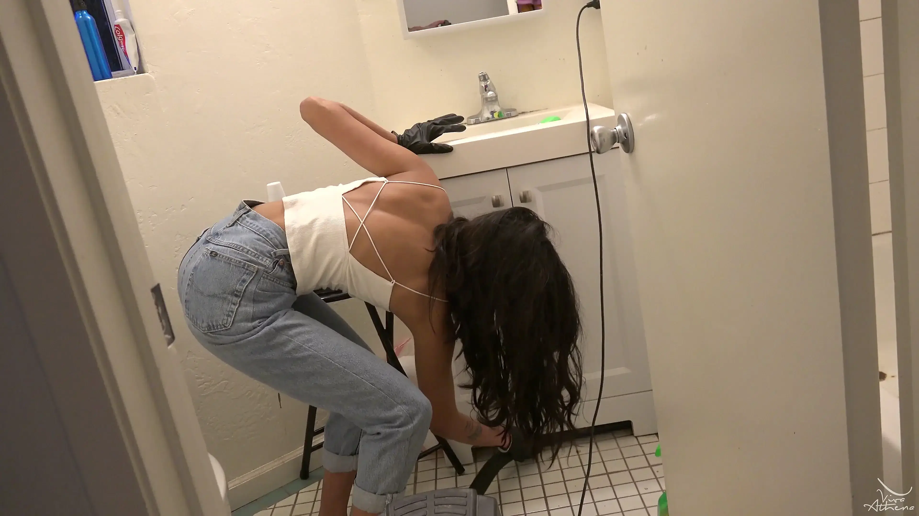 [voyeur Cam] Germaphobe Gf Scrubs My Bathroom During Covid 19