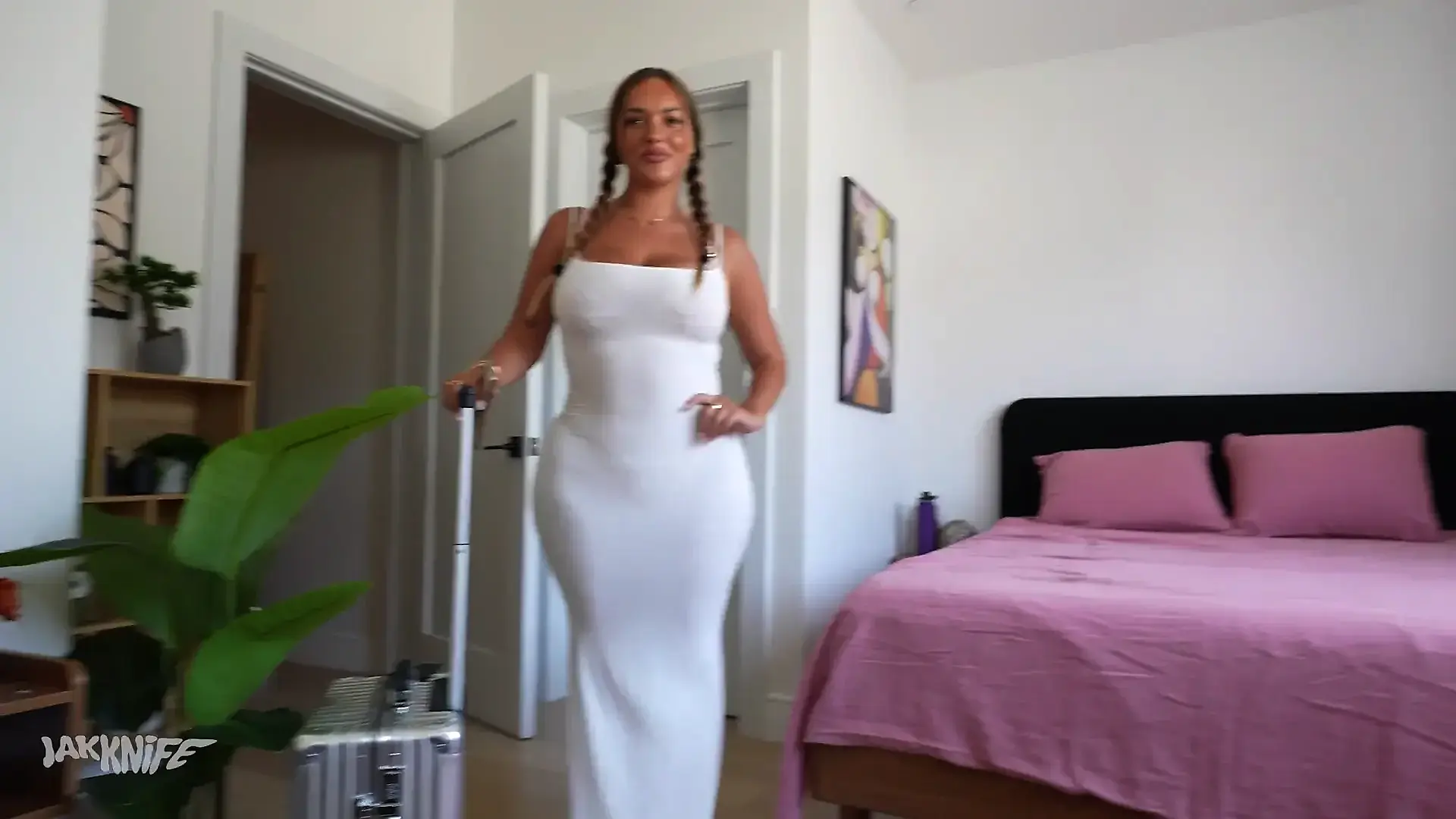 Hot Big Ass Babe Teases in White Pajamas with no Panties... then gets Fucked ...