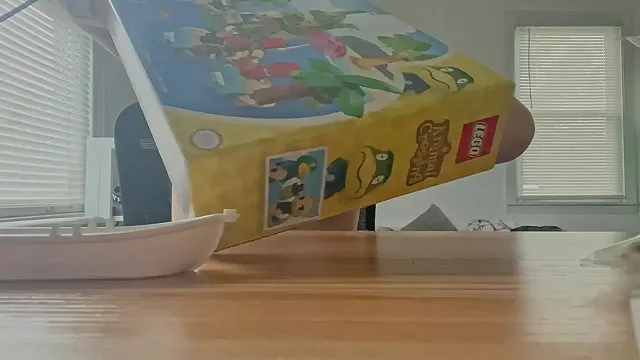 Topless Lego Building with Natural Saggy Tits