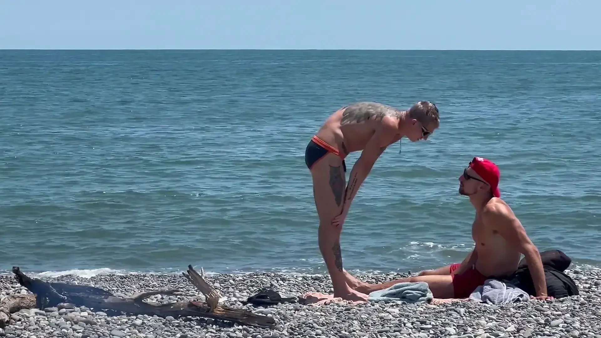 A Big-dicked Guy Fucked a Twink on the Beach and Came Several Times