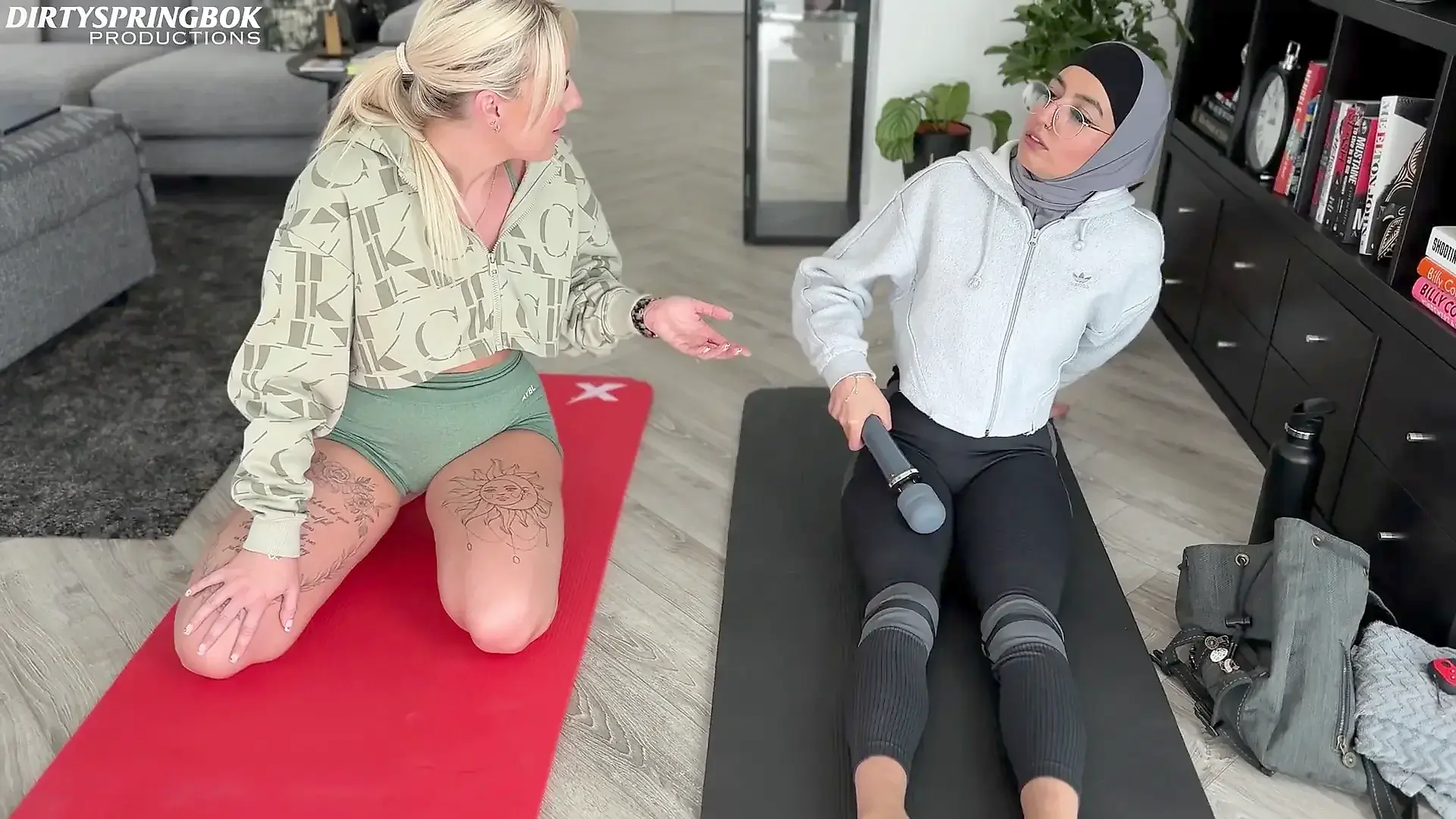 Emily Shows Hijabi Aaliyah Yasin how to Relax after Gym