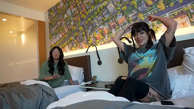 Asian and Latina Cuties Wearing Sexy Lingerie Share a Huge Cock