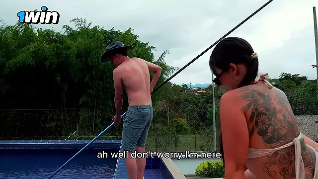 Slut Outdoor Fuck with Unknown Soldier in Public Pool while Her Cuckold Dani ...