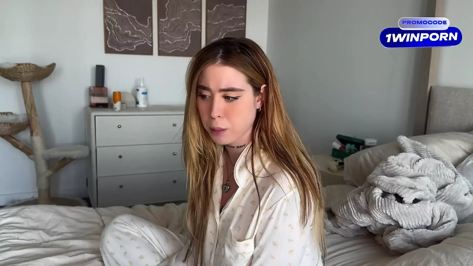 Mi Step Sister Enters Mi Room Scared and Wants to Calm Her Fear with Mi Cock