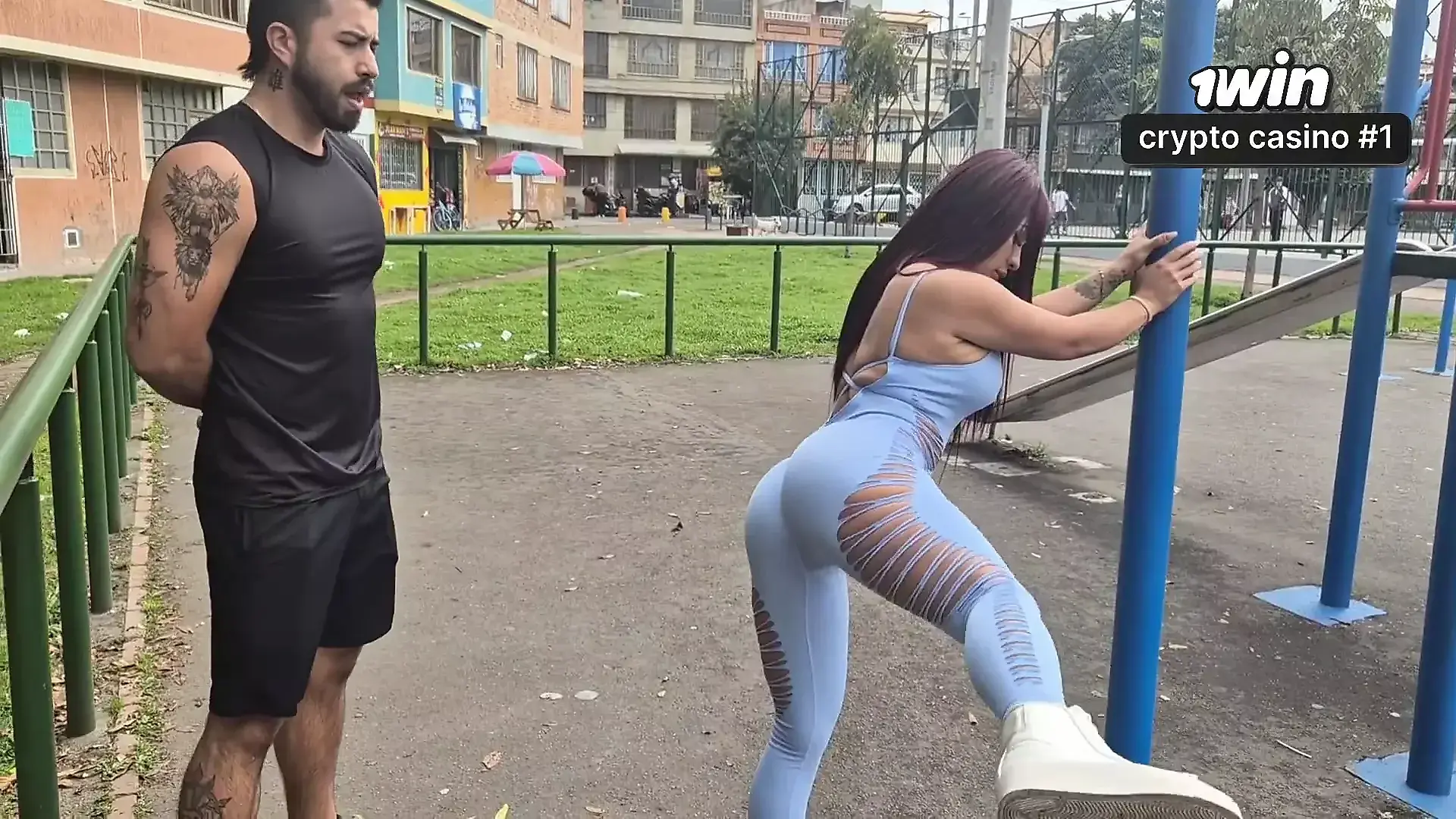 Milf in Pink Yoga Pants gets Cum on Black Pantyhose Ass - Tight Red Minidress...