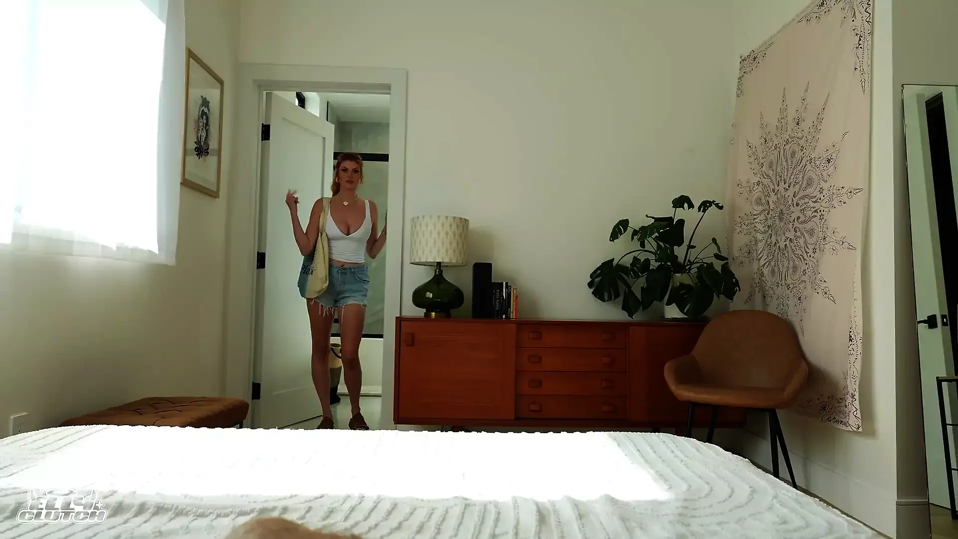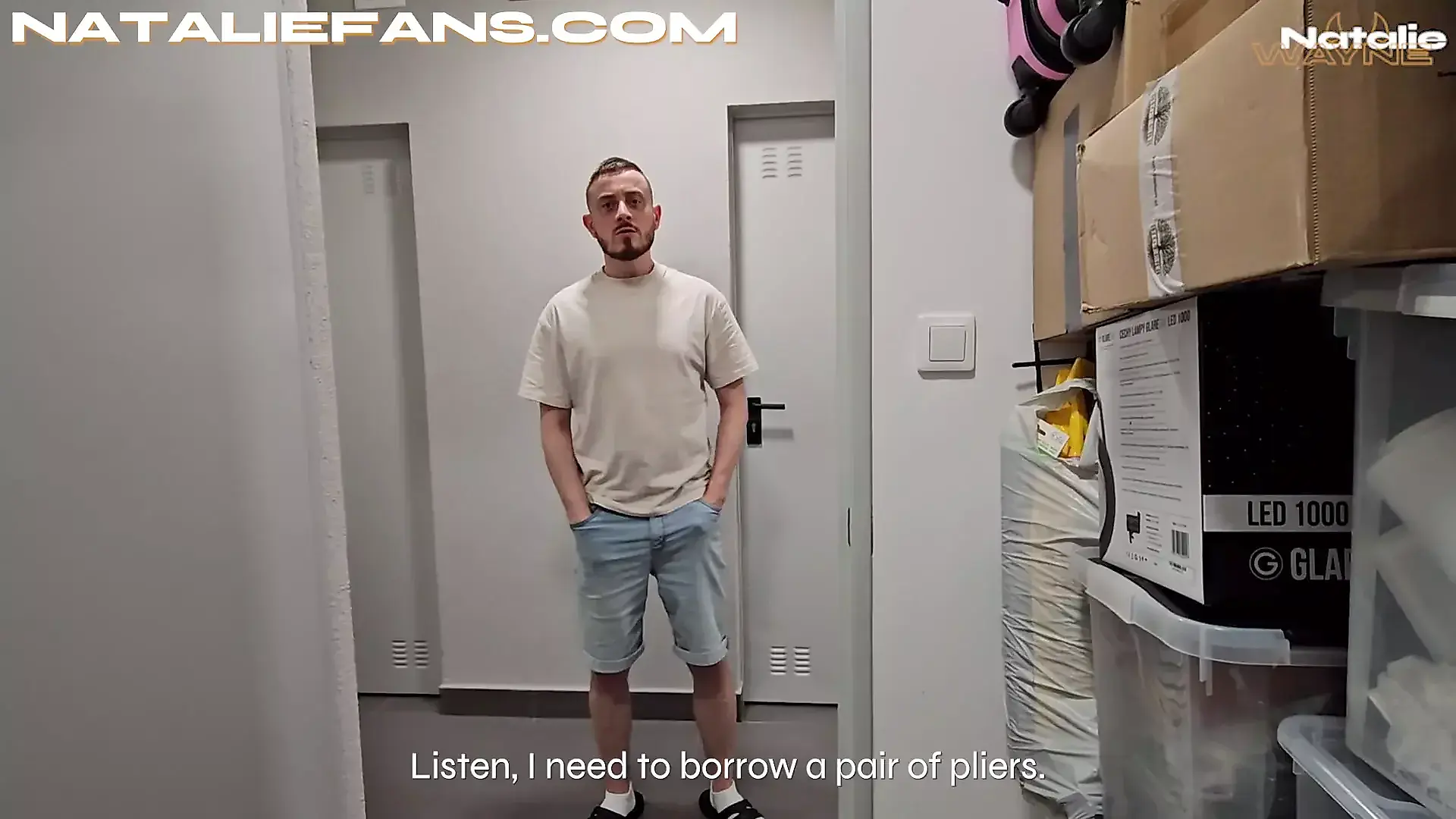 Naked Ass in Leather Pants Hid in the Closet from Neighbor