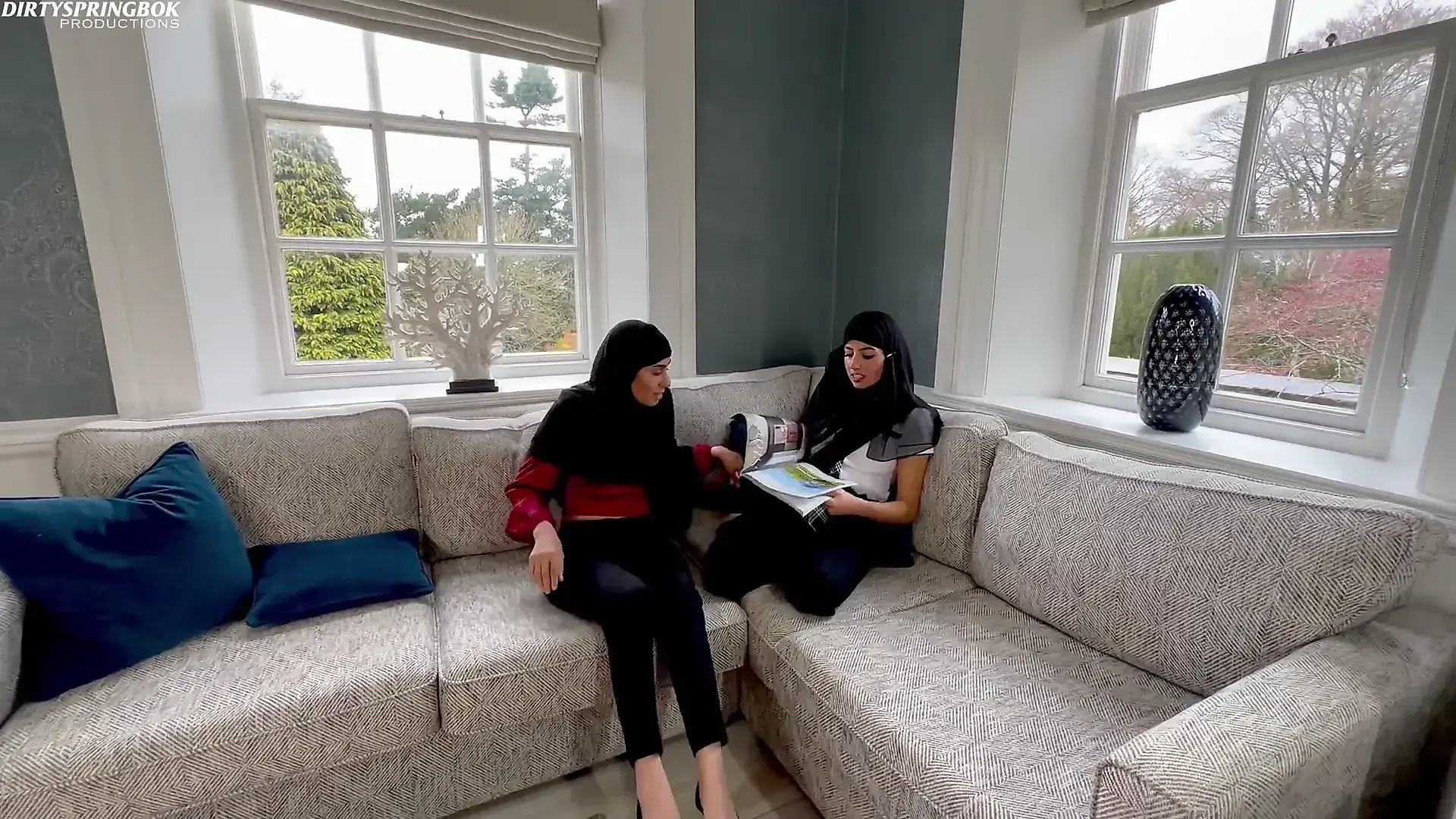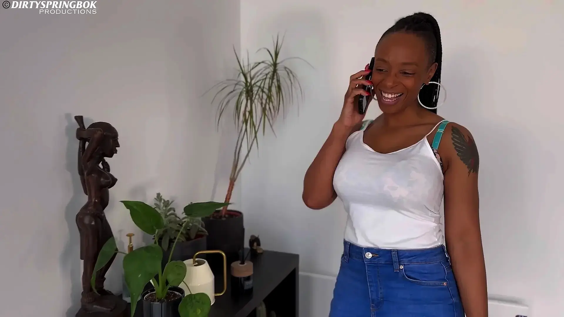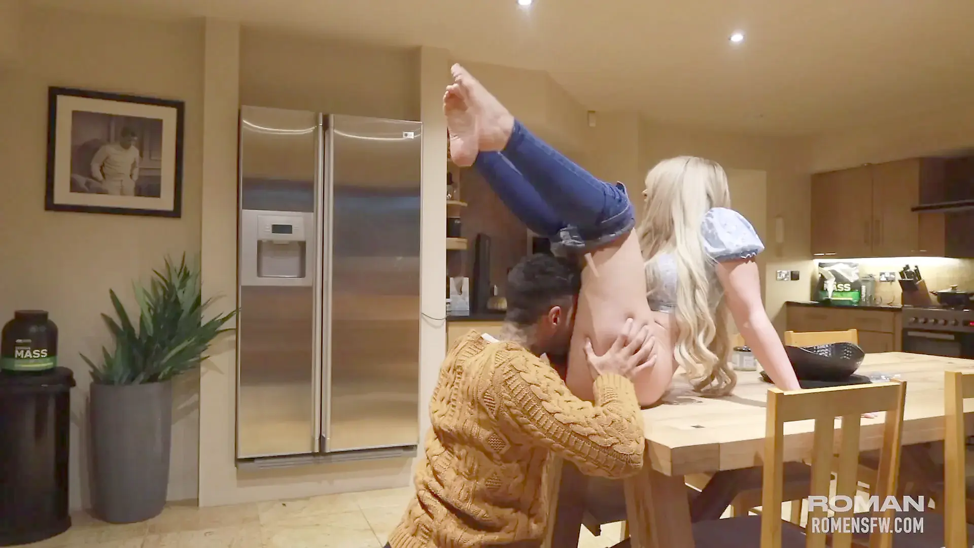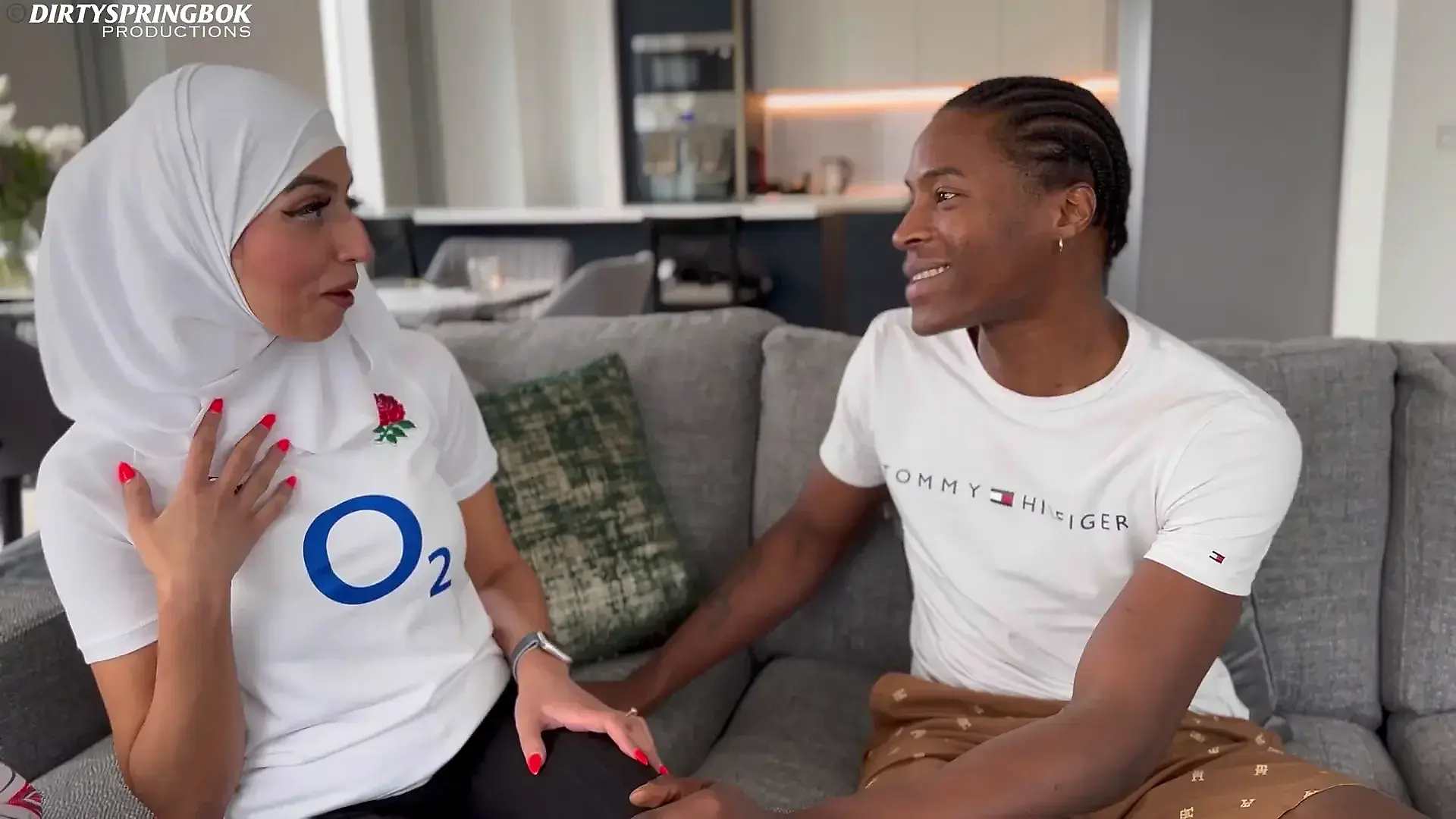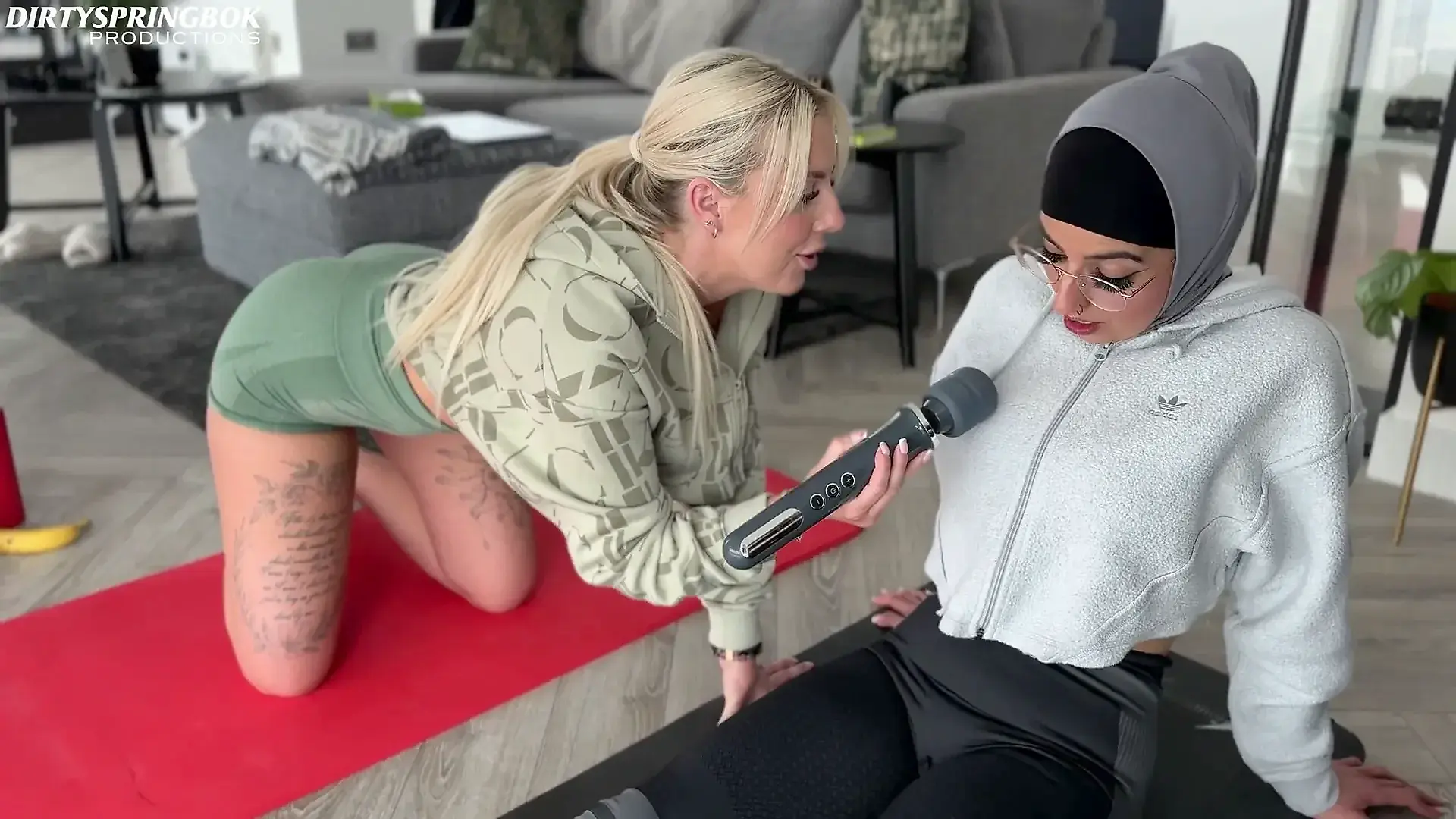 Fucking in Red Fishnet Tights and Finishing with with an Oiled Handjob