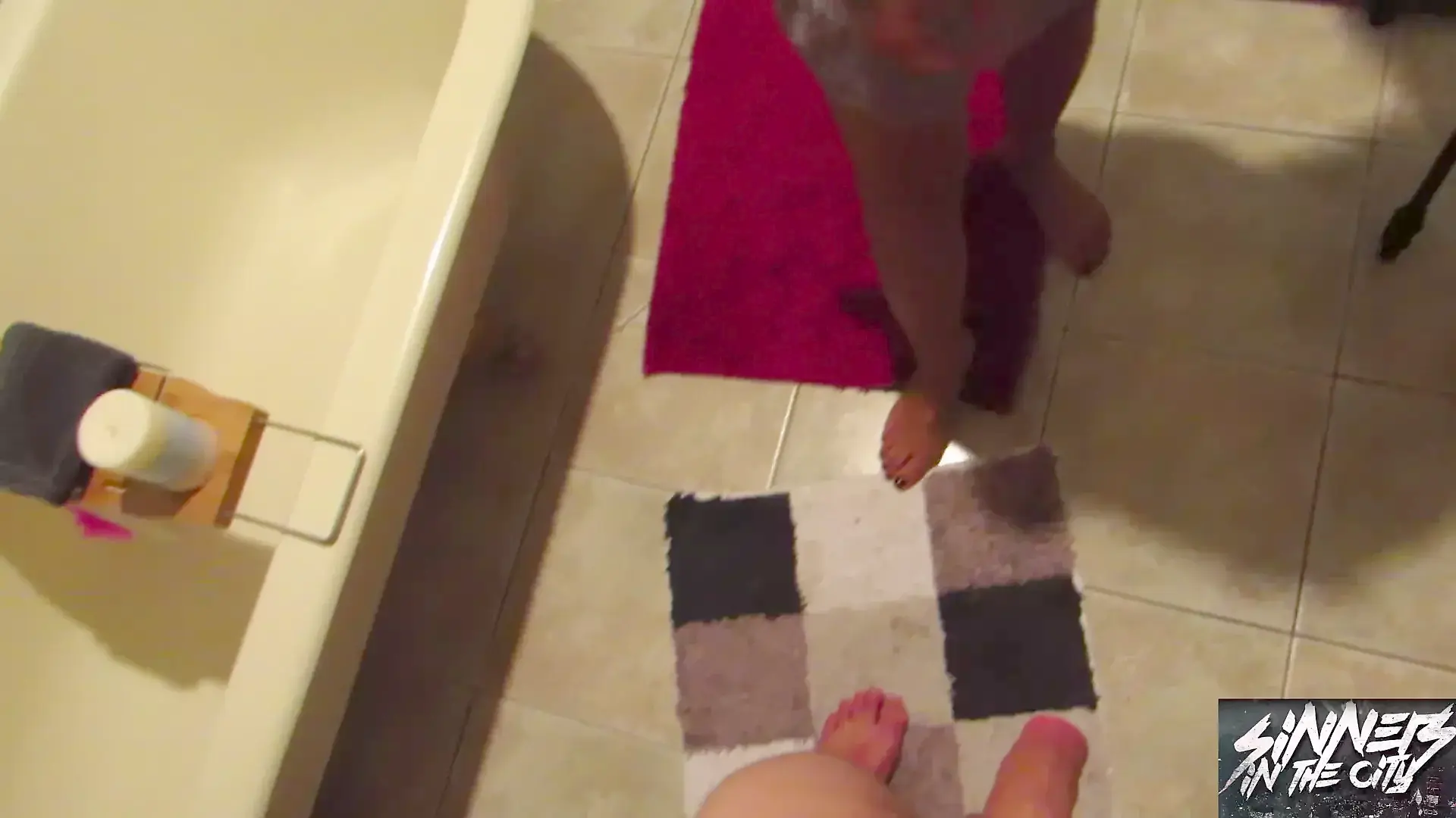 Fucking in Red Fishnet Tights and Finishing with with an Oiled Handjob