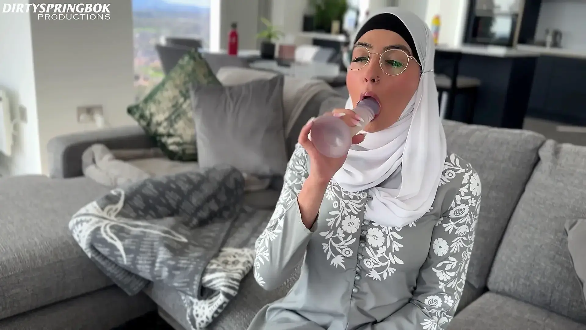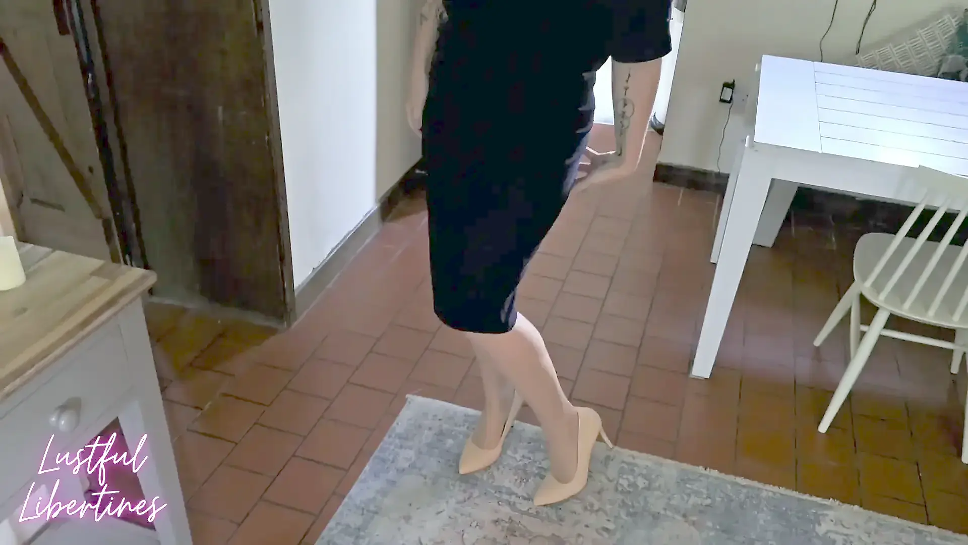 Bouncing on Dick in Seamless Pantyhose - Red Lipstick Slurping Blowjob