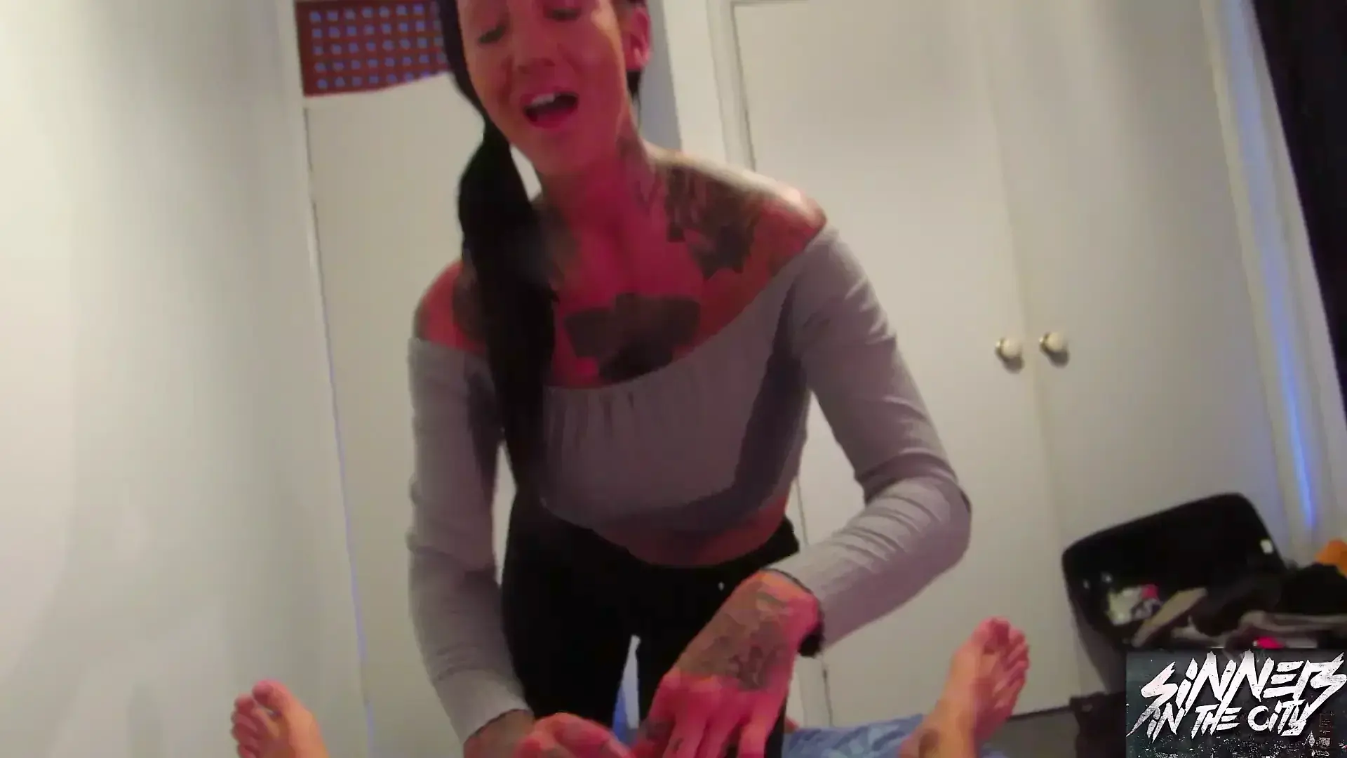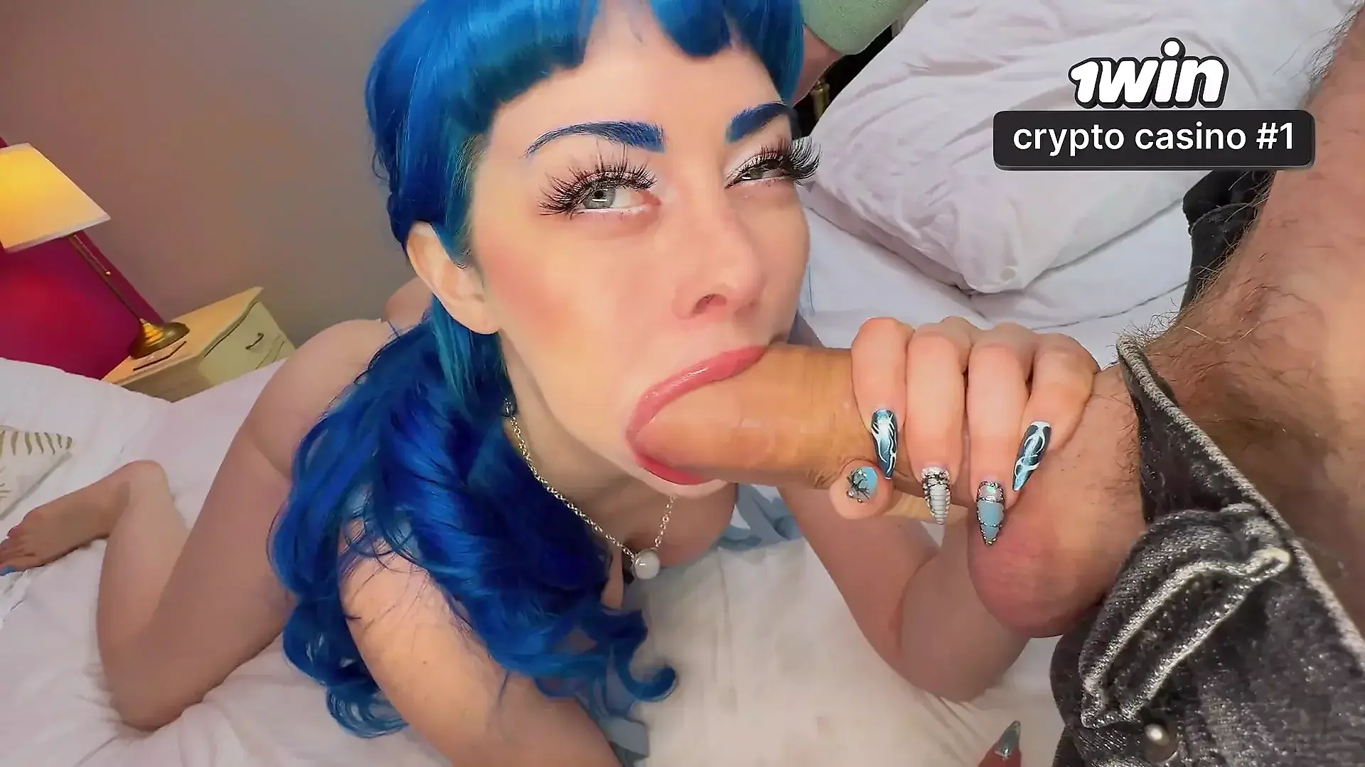 Fucking in Red Fishnet Tights and Finishing with with an Oiled Handjob