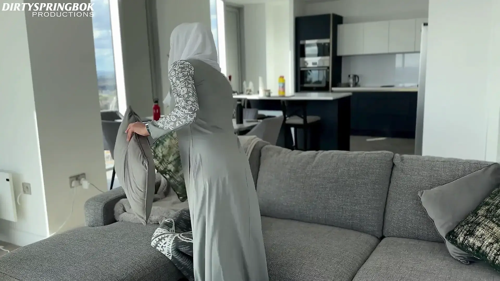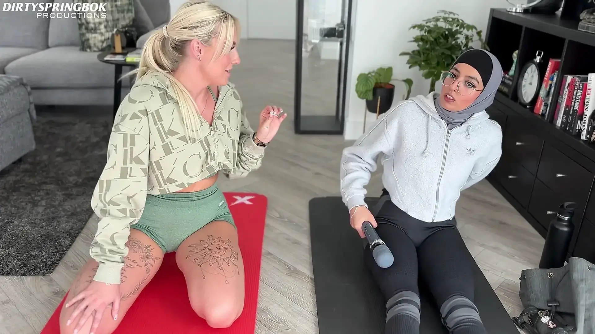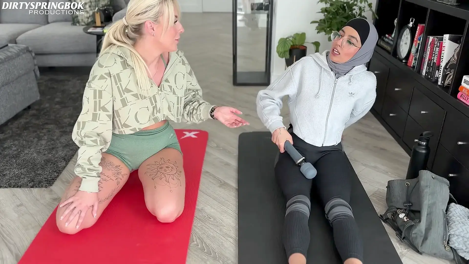 Fucking in Red Fishnet Tights and Finishing with with an Oiled Handjob