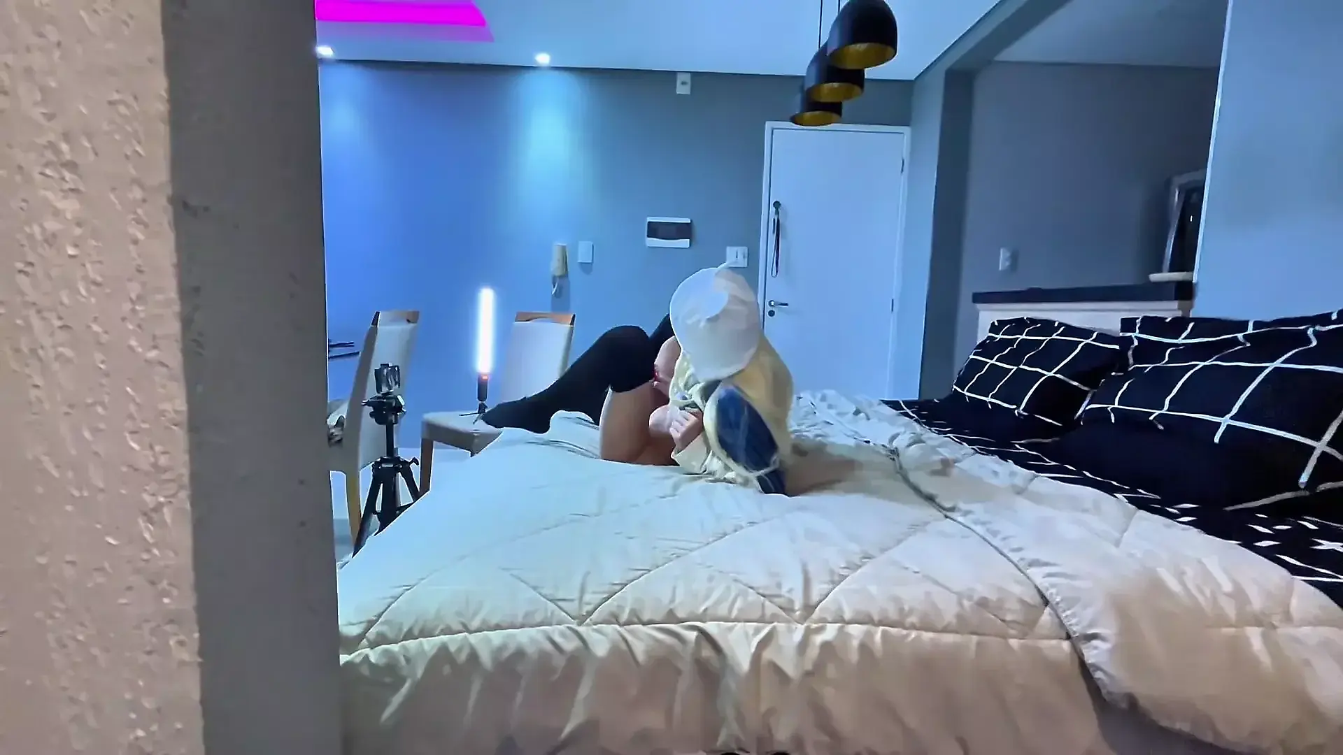 Black Cat Pawg Teen has a Freaky Halloween Live Sex Show with Massive Cumshot