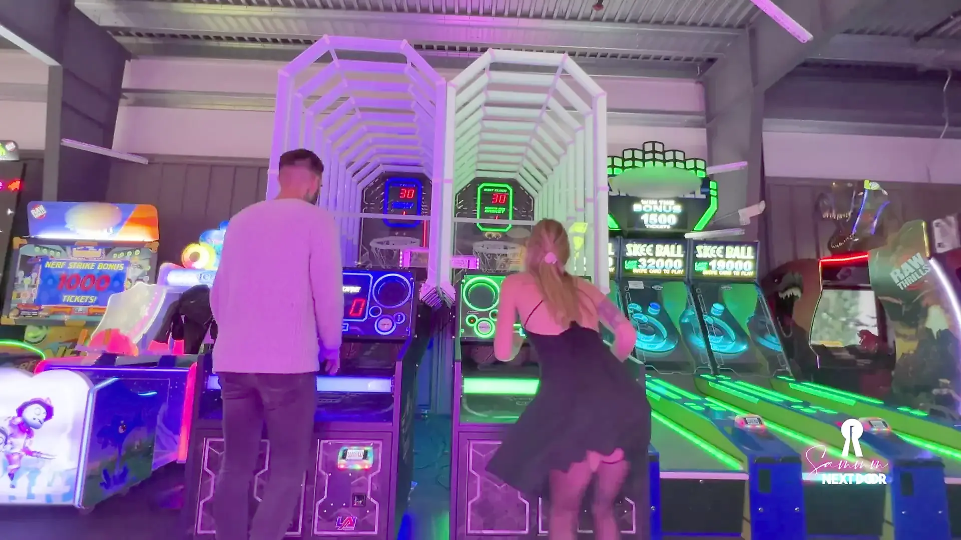 Natural Bust Spills from Tiny Bra in Couple Scene