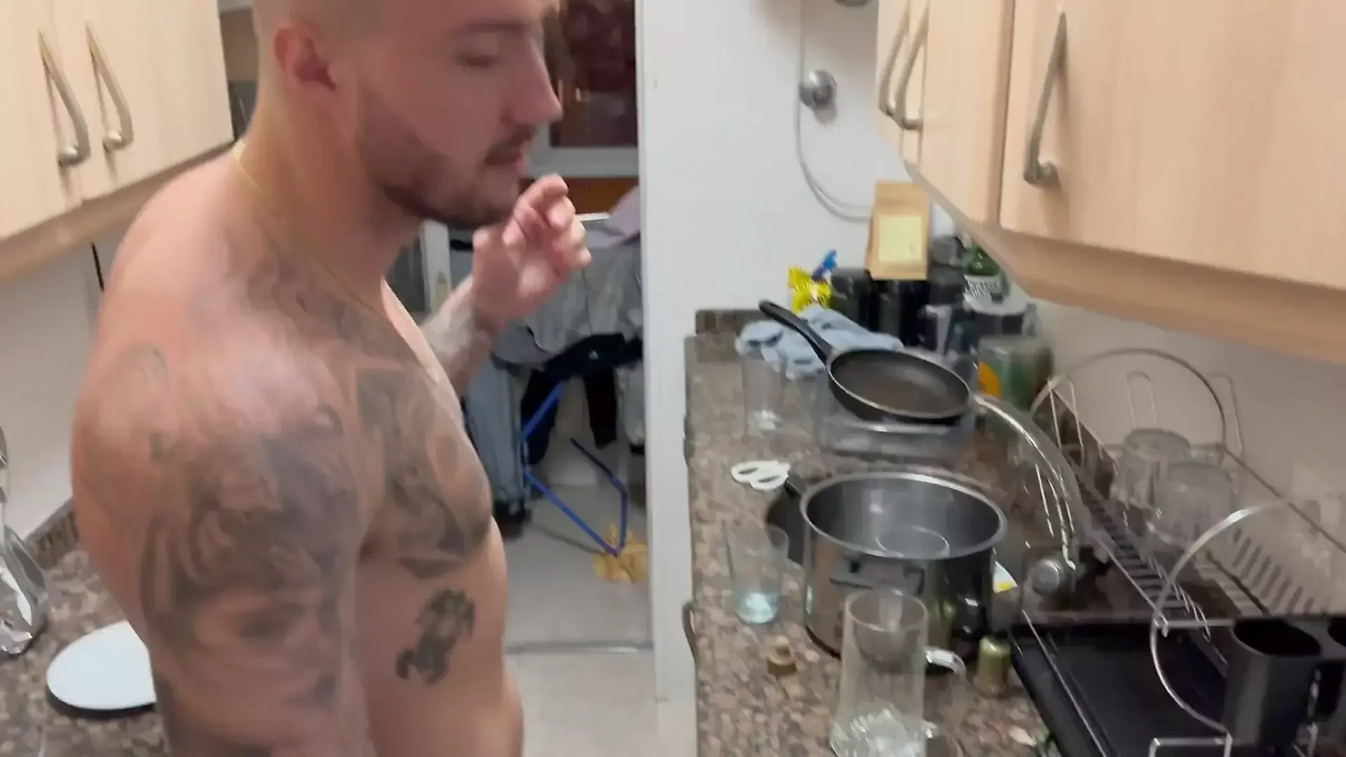 Woman Performs Oral Sex on Stepdad During Kitchen Renovation