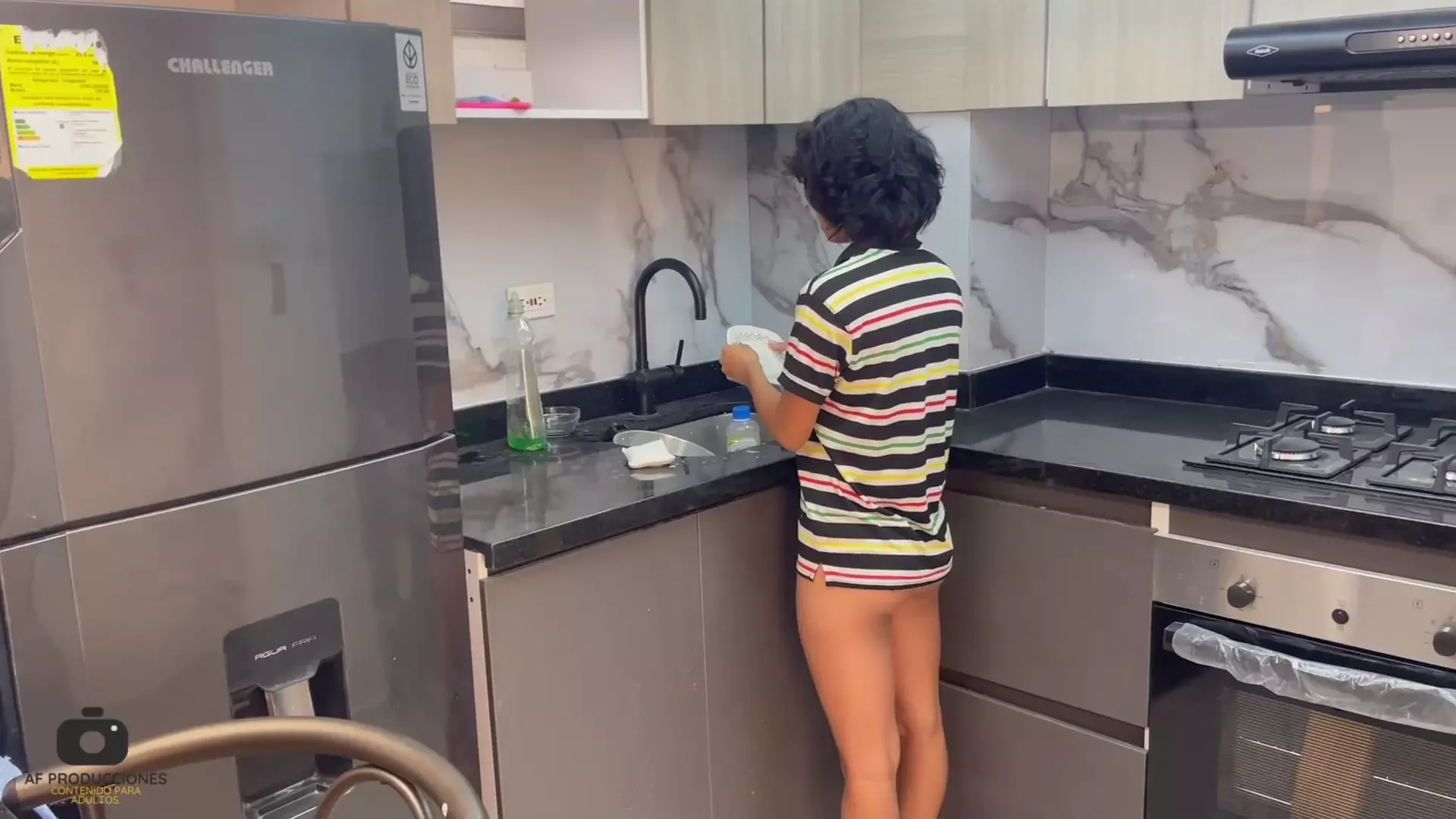 Kitchen, Babe, Big, Standing Missionary, Brunette, Natural, Bouncing Ass, Cum, Cumshot, Uniform, Miniskirt