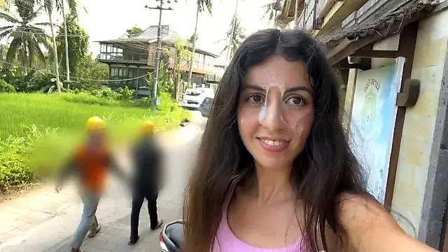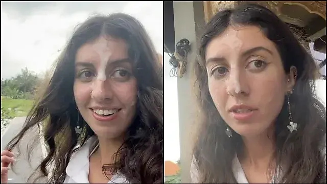 Cum on a Girl's Face in a Public Cafe - She Eats Lunch with Cum on Her Face!