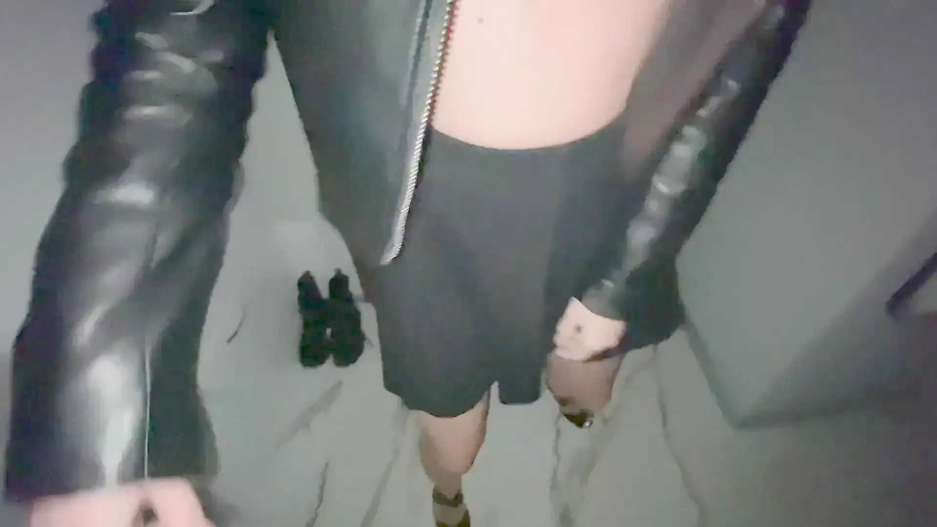 Horny Chick W Leather Jacket Came after Techno Party Remove Condom