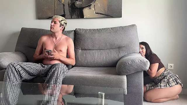 Unfaithful Cuckold Girl gets a Hard Fuck from Her Lover in Front of His Eyes