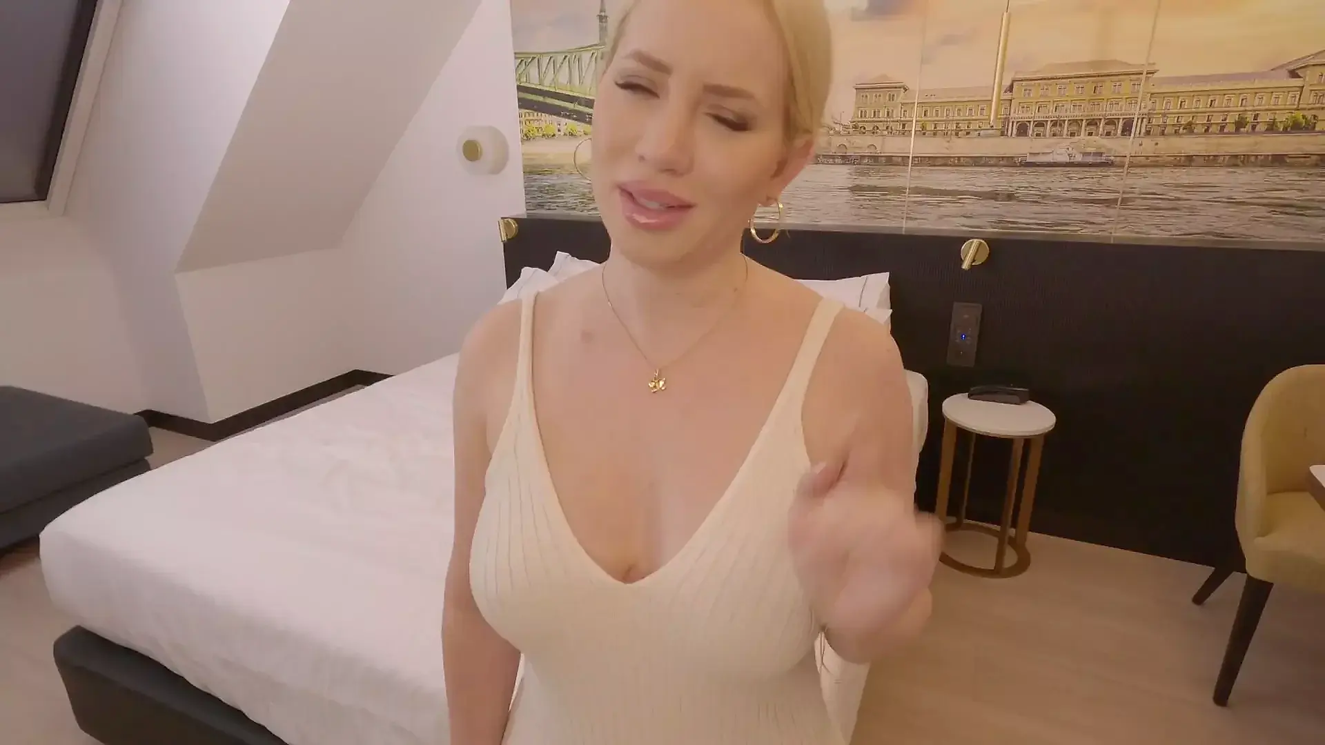 Big Boobs Curvy Blonde Pornstar Complains About Noisy Neighbor in Hotel