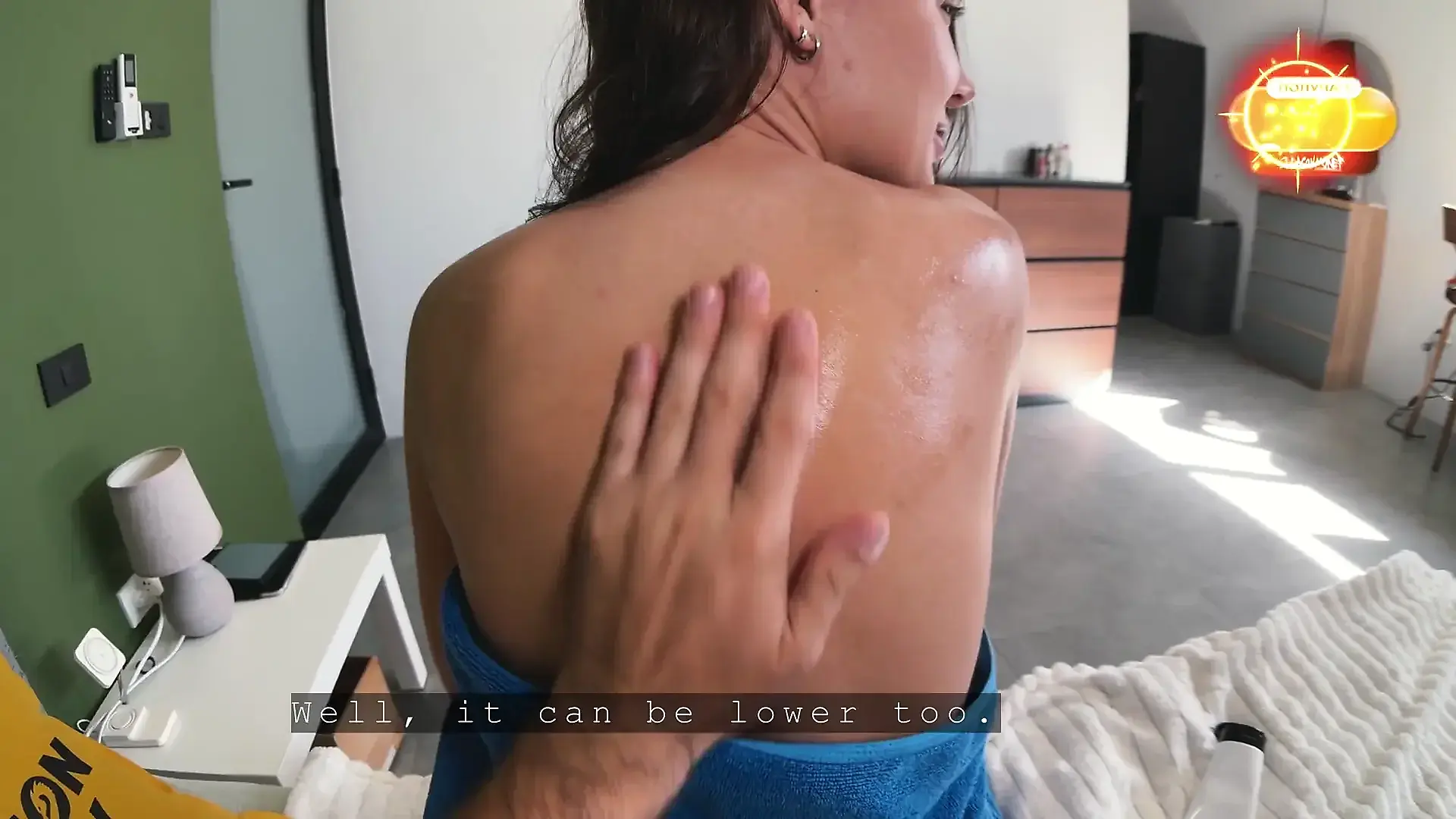 Is Smeared with Oil and Fucks Her Tight Ass.