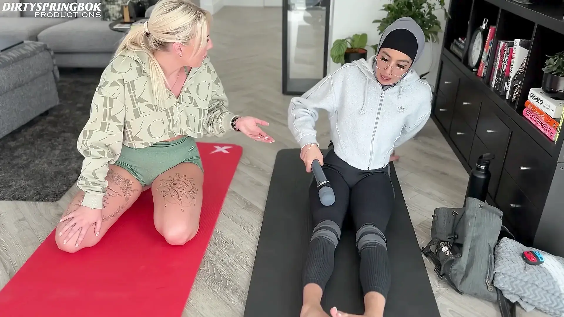 Emily Shows Hijabi Aaliyah how to Relax after Their Gym Workout