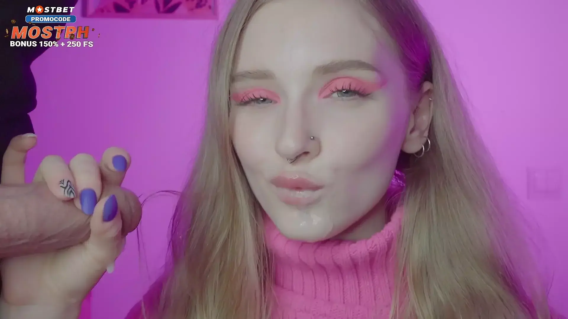Giant Cumshot! Her Face is Completely Covered Sperm