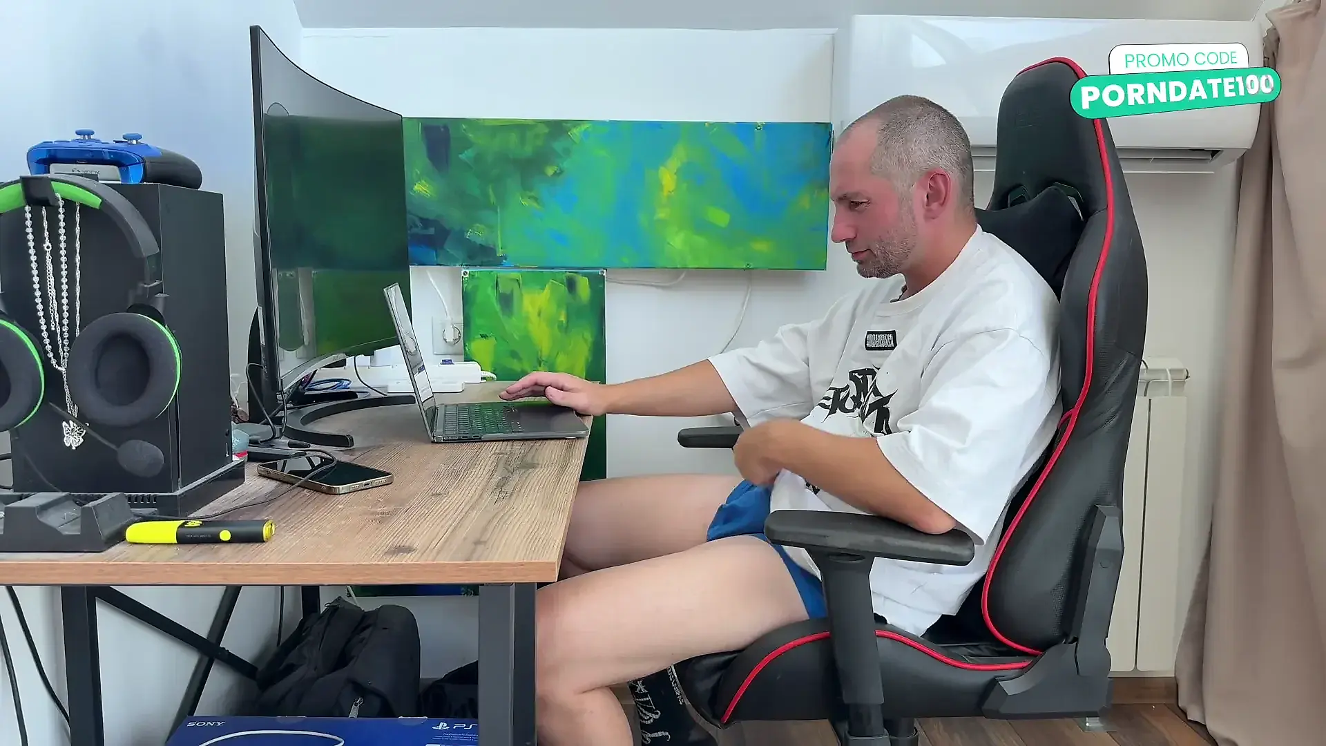 Humping and Making Stepbro Cum on Himself with My Hot Ass in My New Shiny Leg...