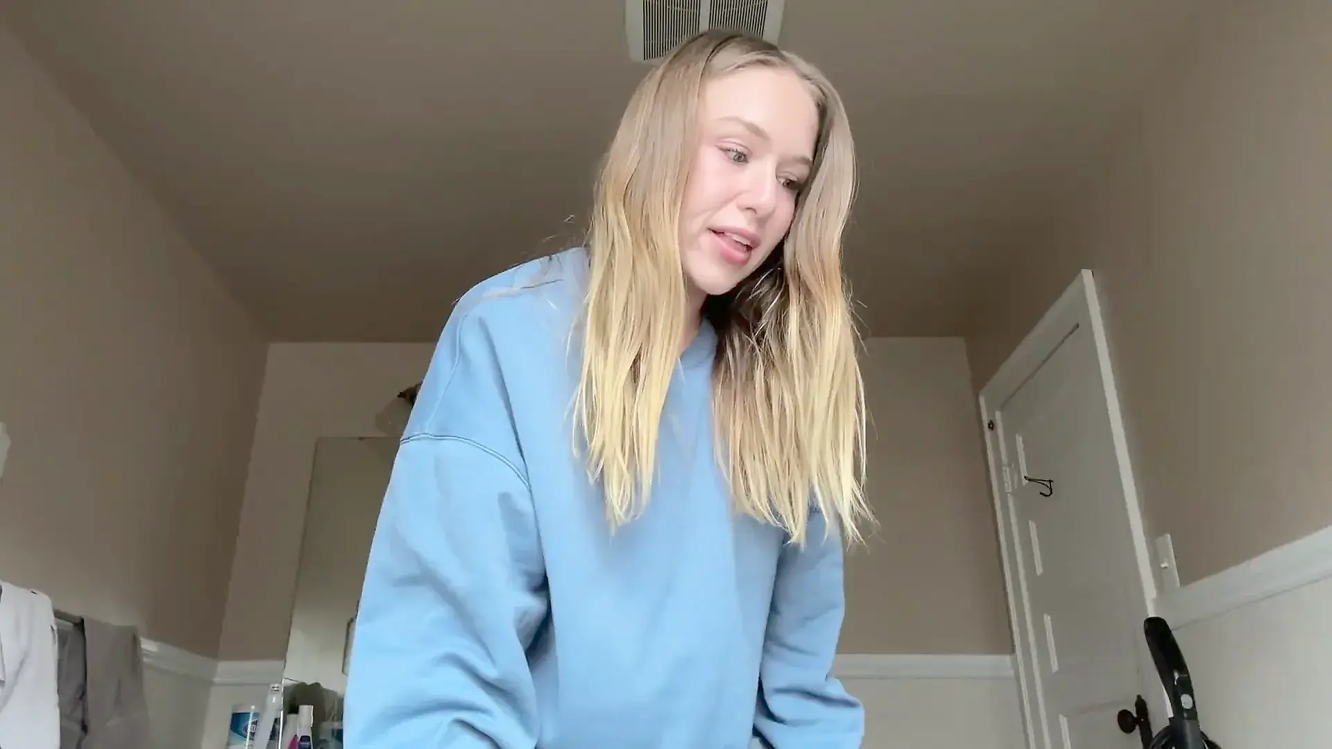 Petite Woman in Blonde Makeup Stretched for Casting