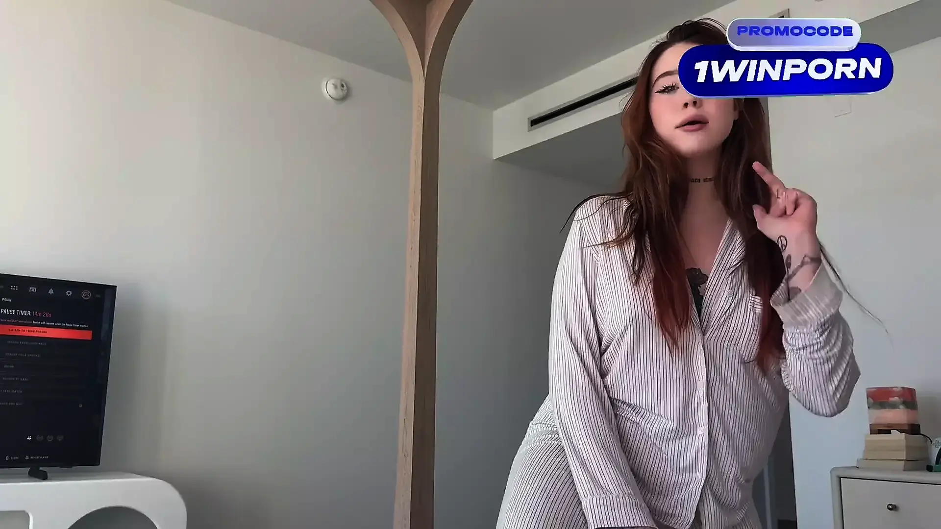 Pretty Woman in White Stockings Dancing and Caressing Her Pussy