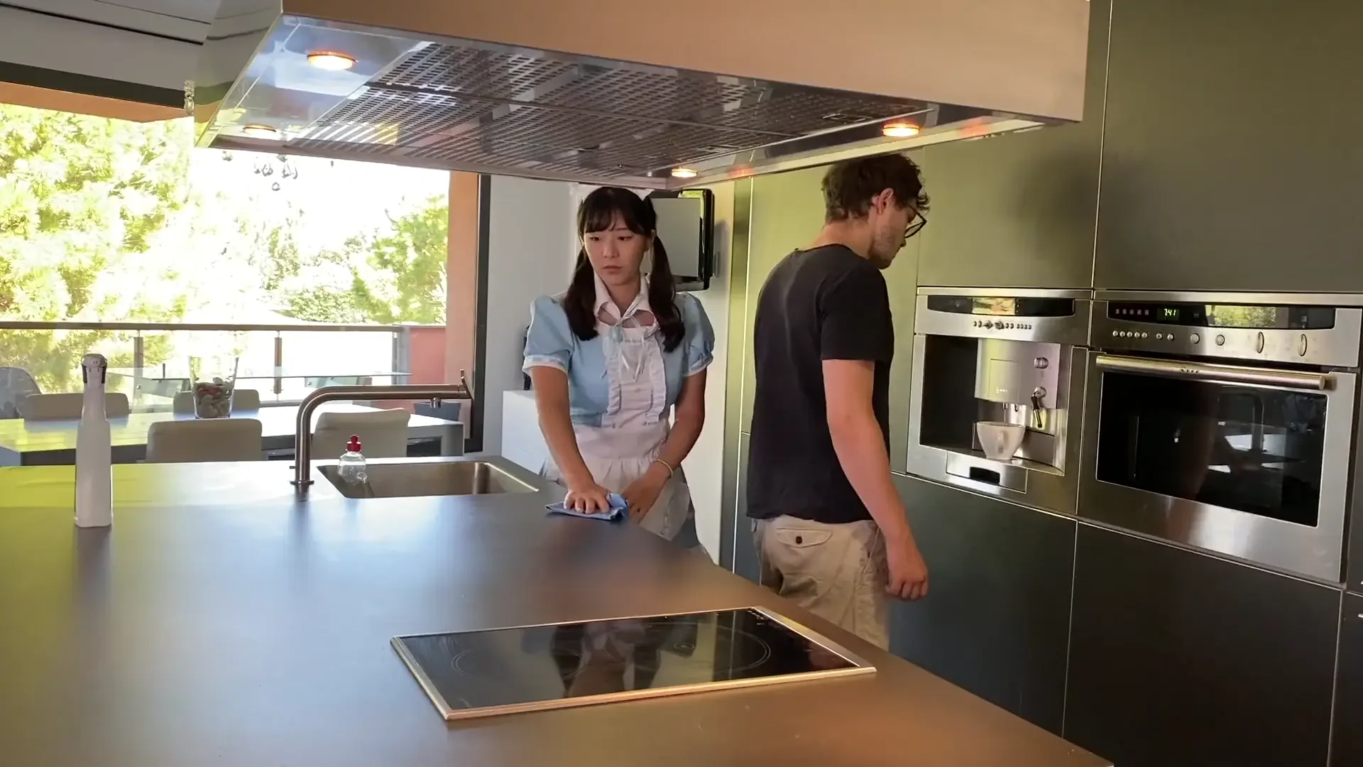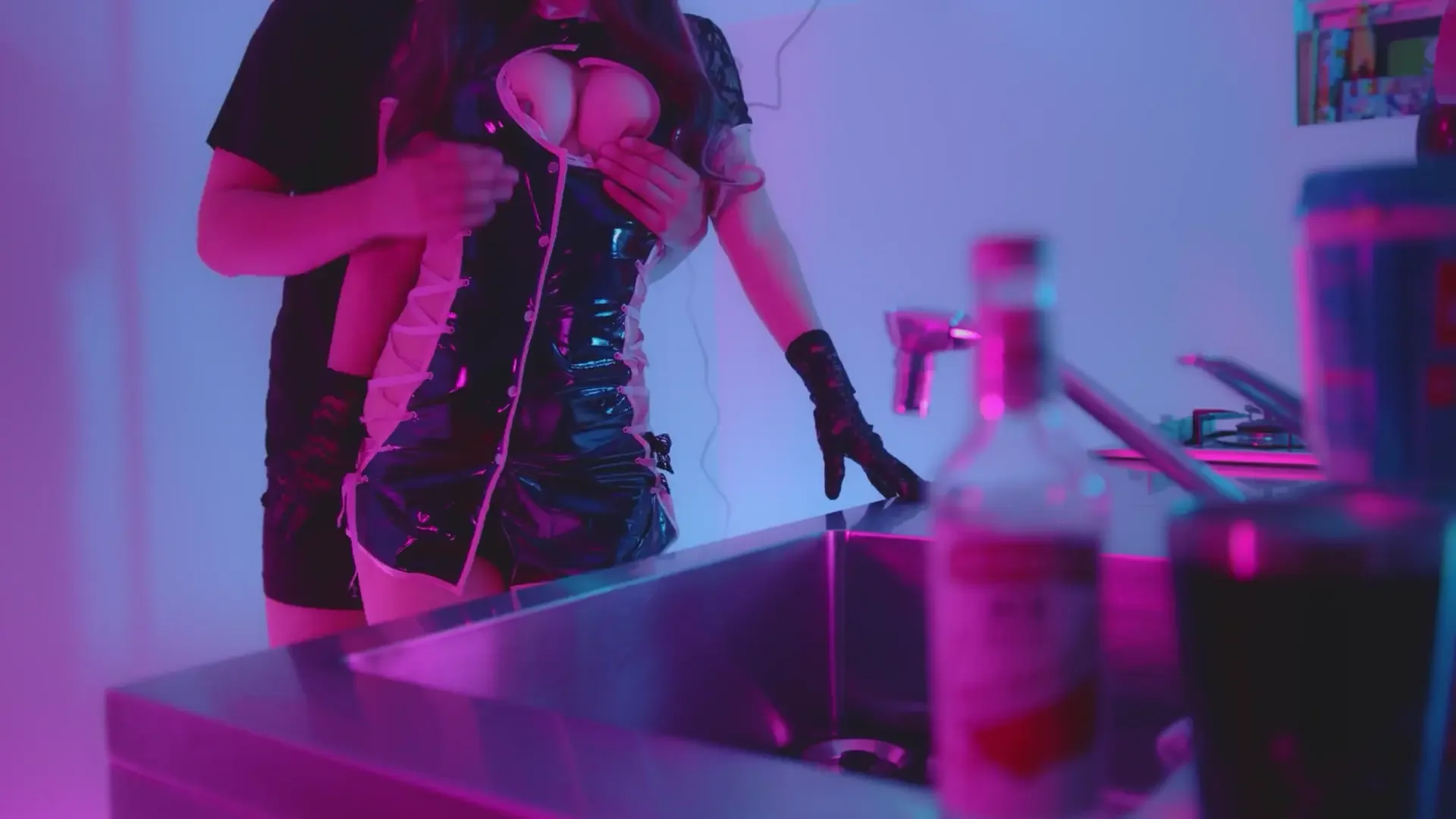 A Caf Girl Dressed as an Erotic Nurse Orders and Swallows a Customer's Sperm.