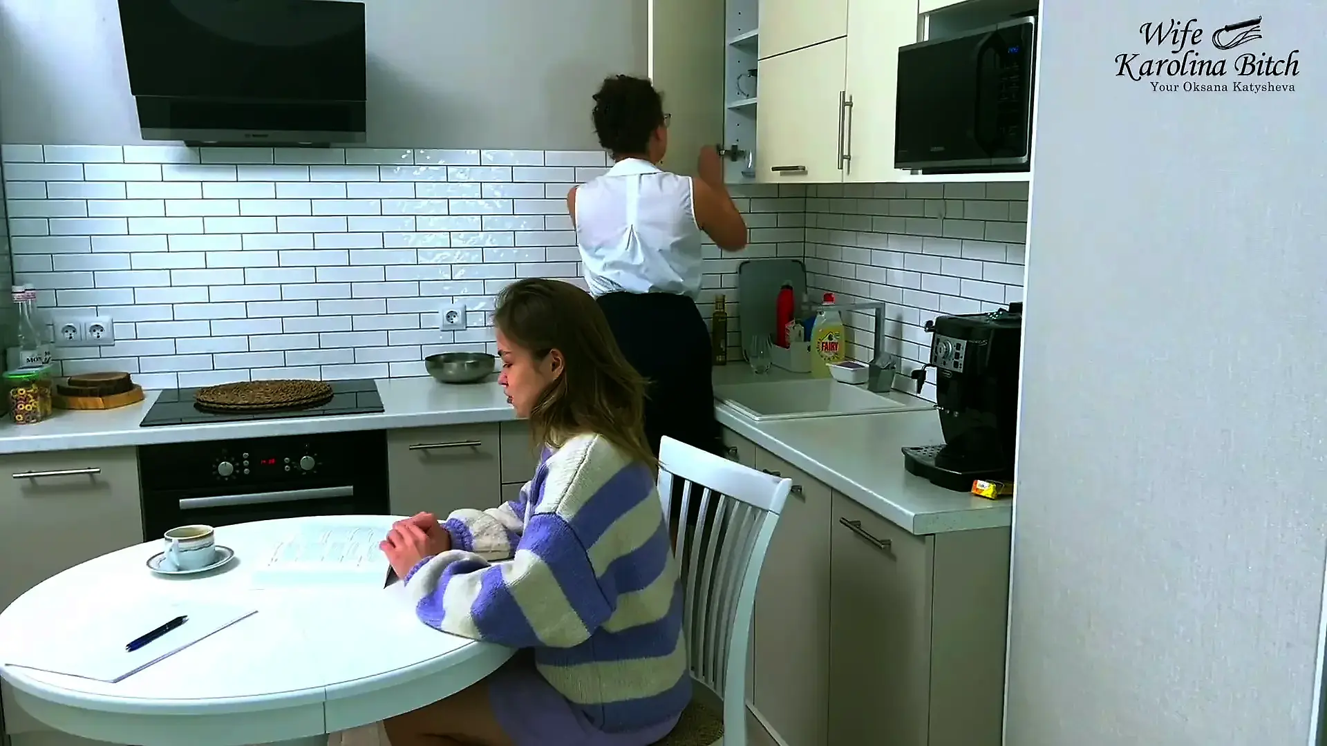 Shared Wife Fucks Two Cocks in the Kitchen for Double Creampie Ending / Hotwi...