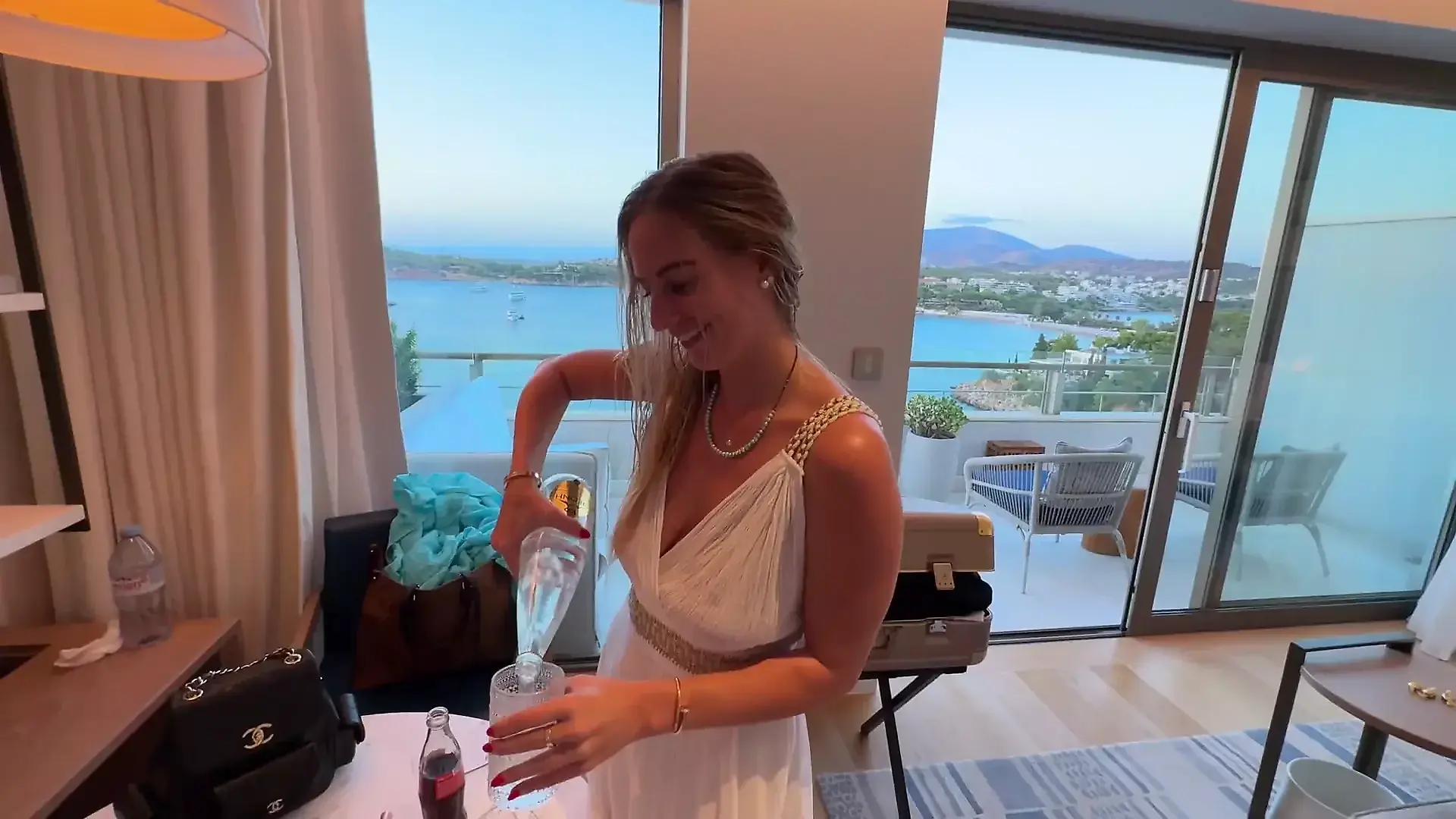 Horny, Big, Latina, Balcony, Lingerie, MILF, Female Orgasm, Outdoor, Public, Slut, Blowjob, Cumshot, Big, Brunette