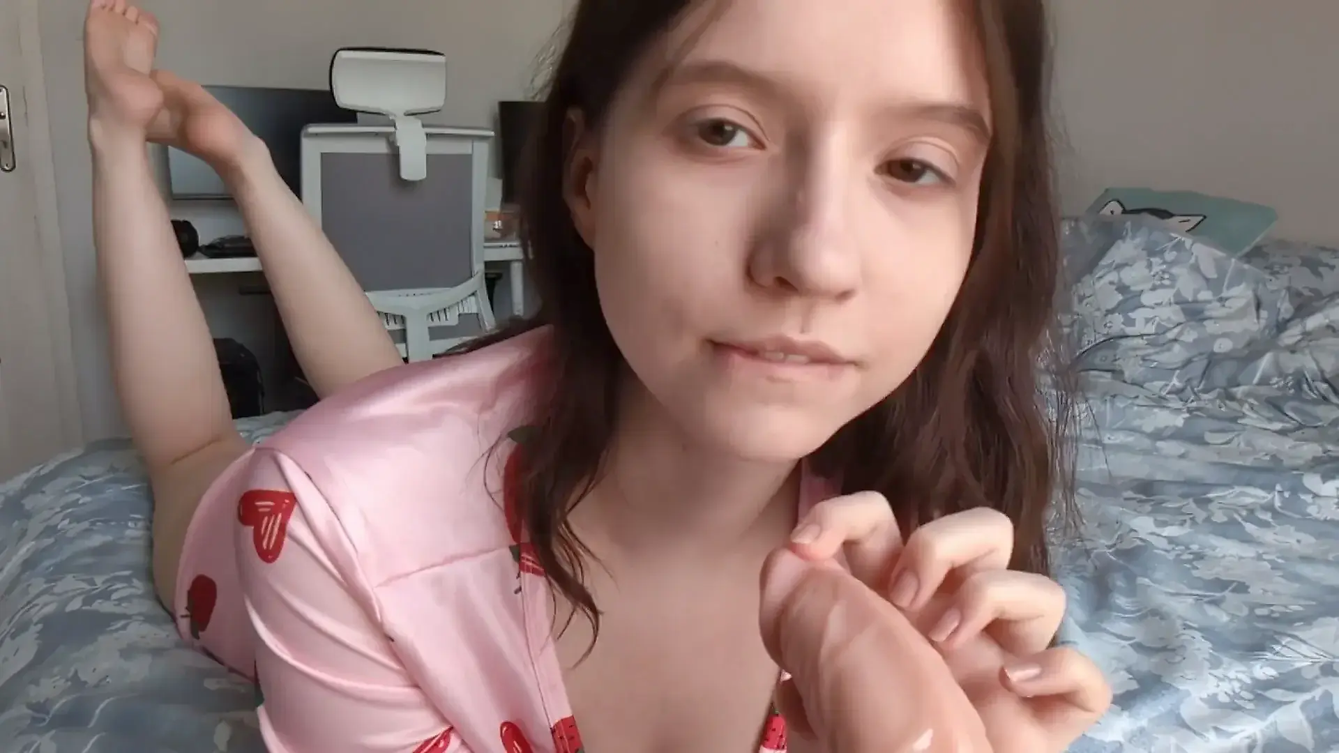 Lonely Student Girl Masturbates with a Monster Dildo