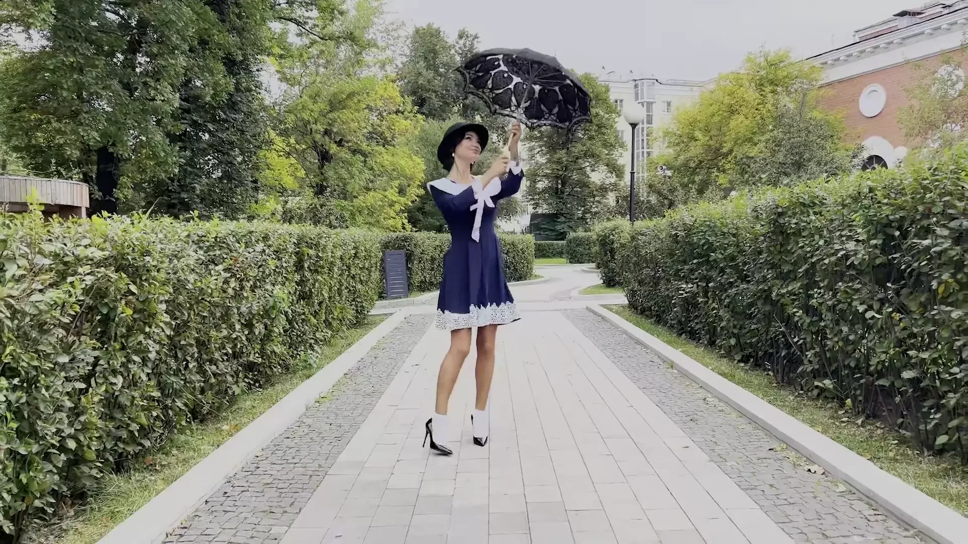 Mary Poppins has Fun with an Umbrella and Big Toys