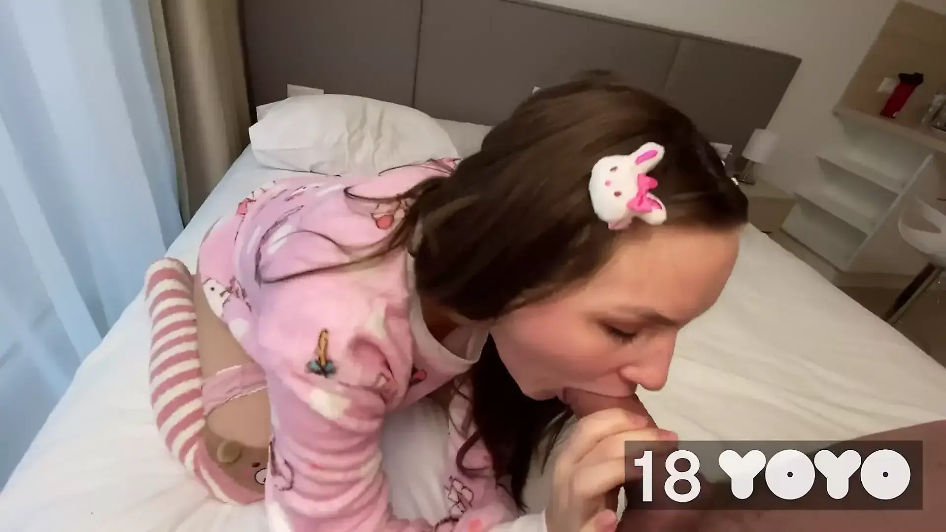 Stepdaughter with Juicy Body in Sexy Lingerie Do Hairjob and Sucking - Cum in...