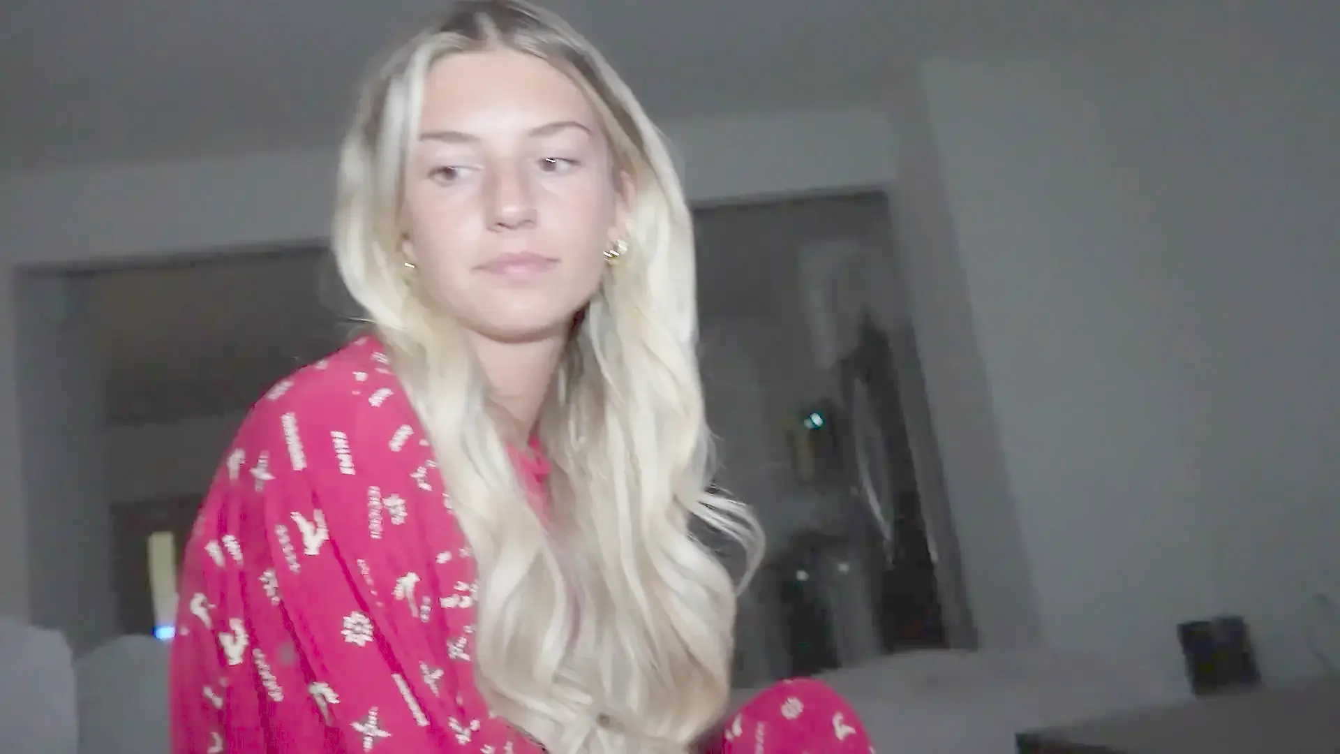 Titted Blonde Girlfriend Rides a Cock in Pink Pajamas. Home Video