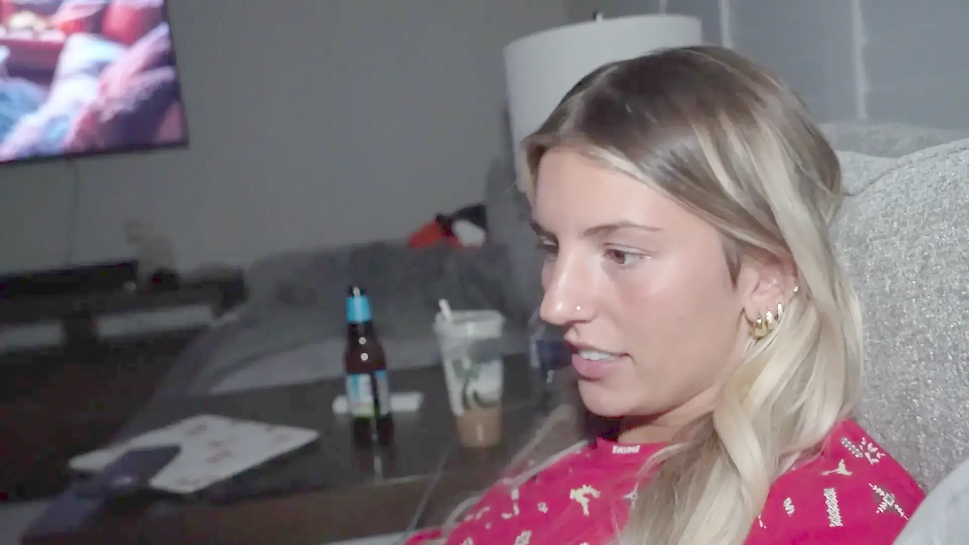 Titted Blonde Girlfriend Rides a Cock in Pink Pajamas. Home Video