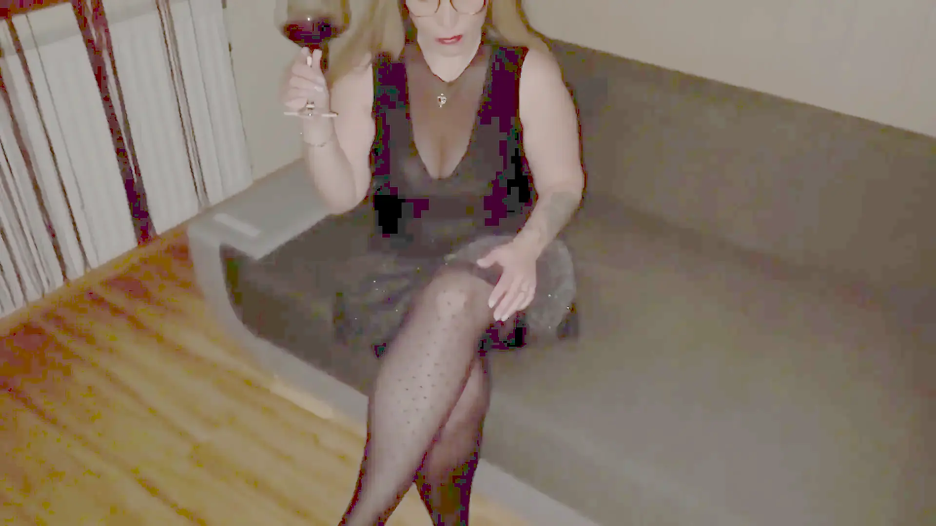 Woman in Black Stockings Squirts Intensely
